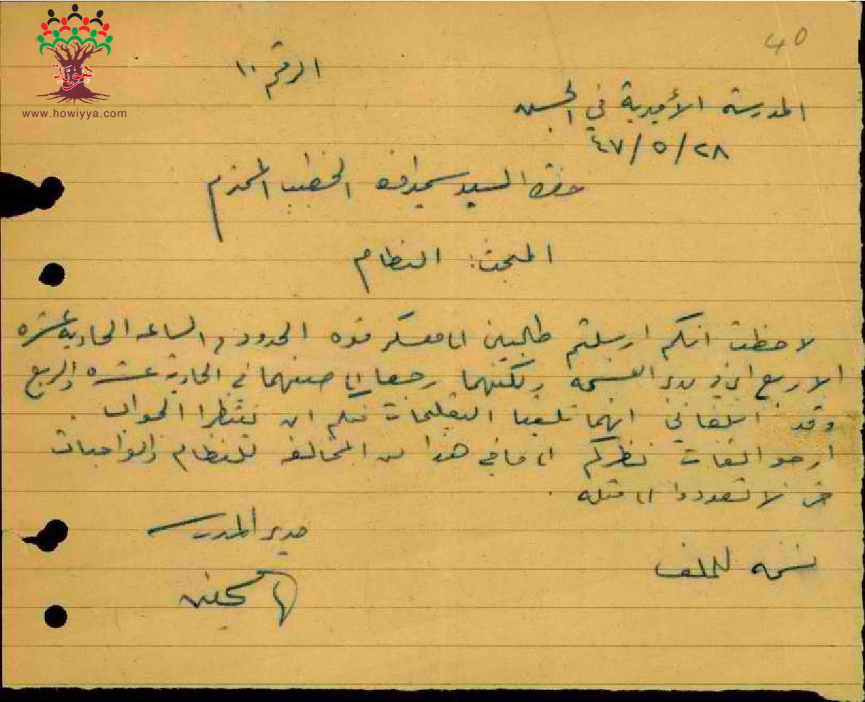 مجموعة رسائل بخصوص توجيه ملاحظة وانذار للمعلم سمير الخطيب للمحافظة على النظام والقيام بواجبه