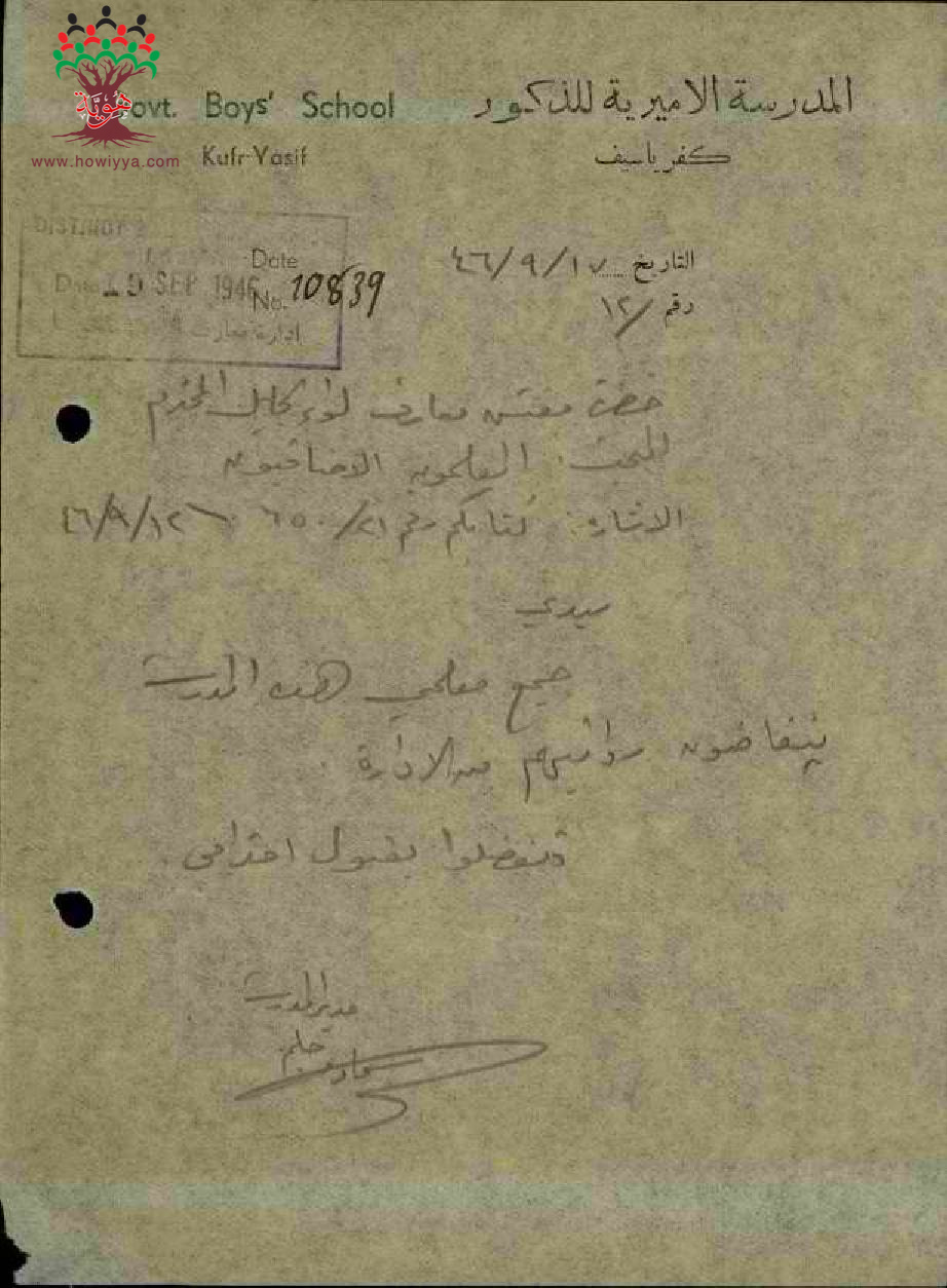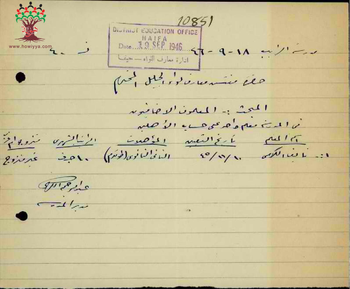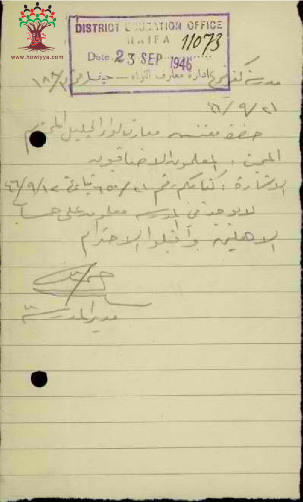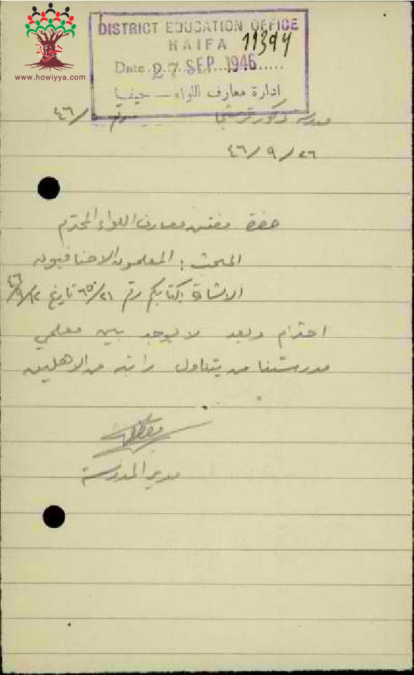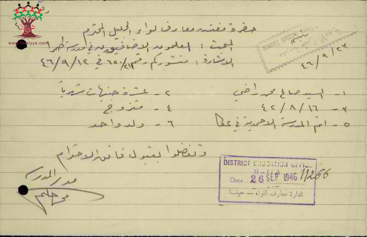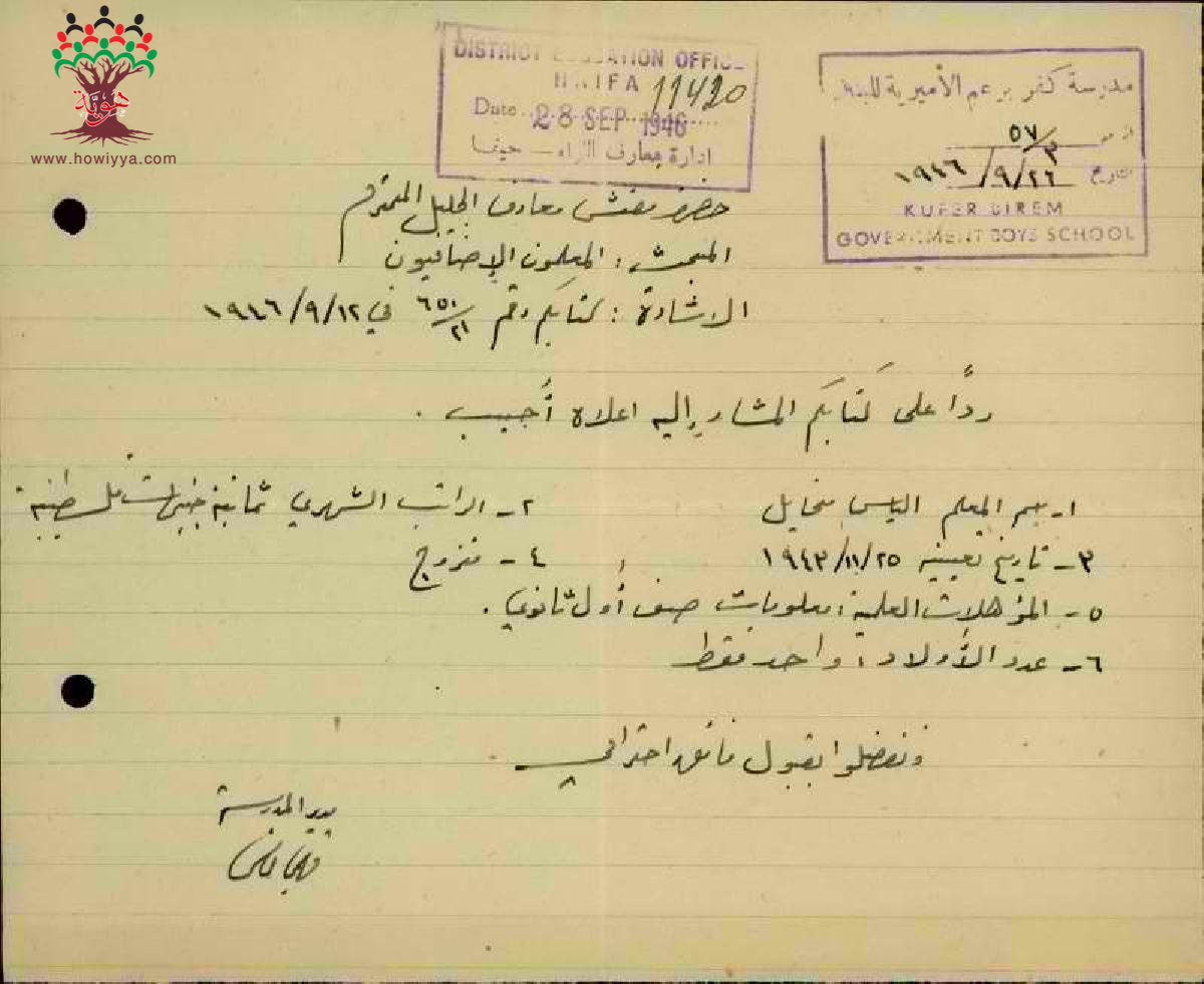 مجموعة رسائل من مدراء ومديرات المدارس الحكومية الى مفتش المعارف مرفقة بأسماء ومعلومات المعلمين الاضافيين في الدرجات الغير نظامية