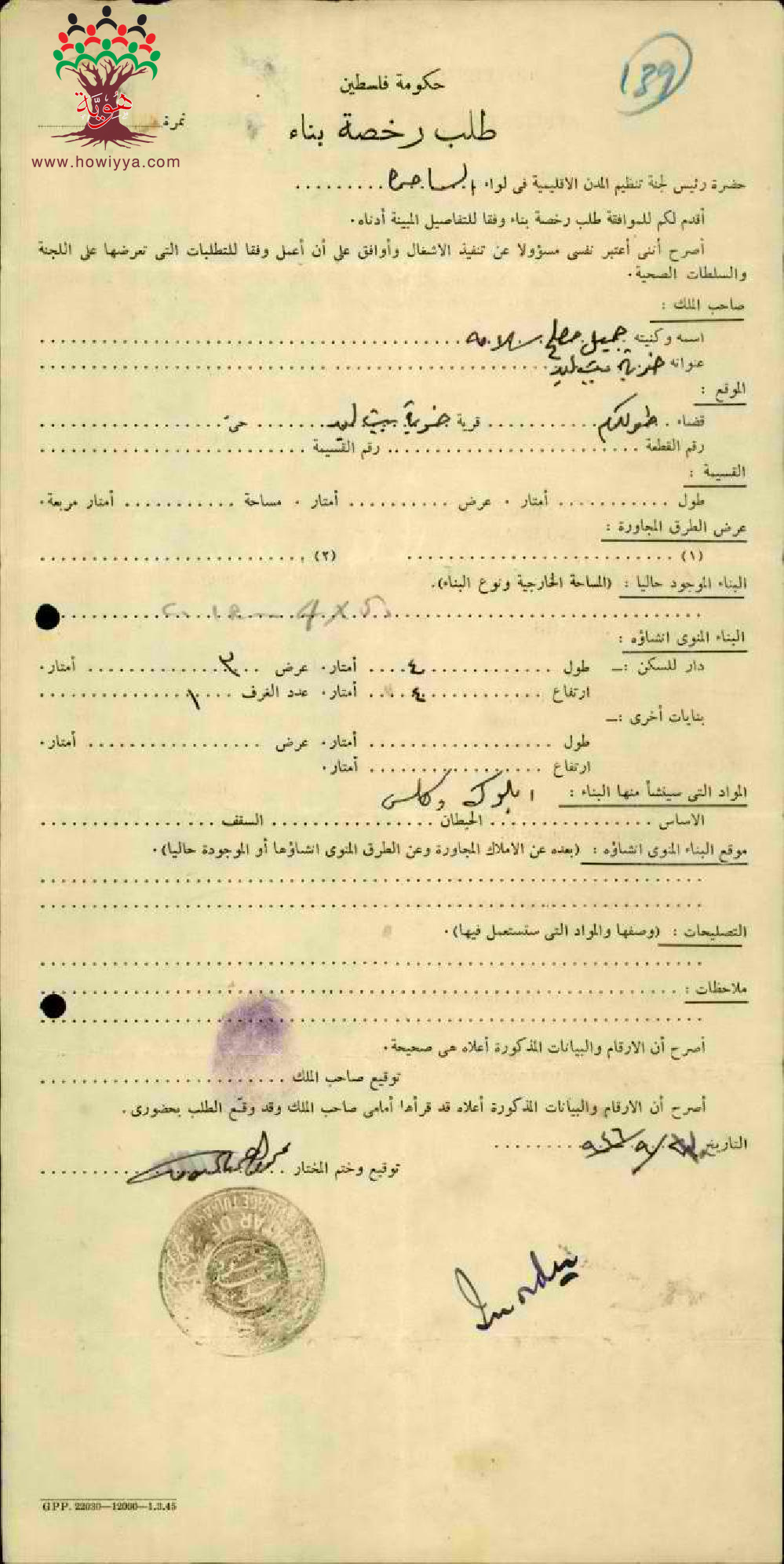طلب رخصة بناء ل جميل مصلح سلامة-خربة بيت ليد
