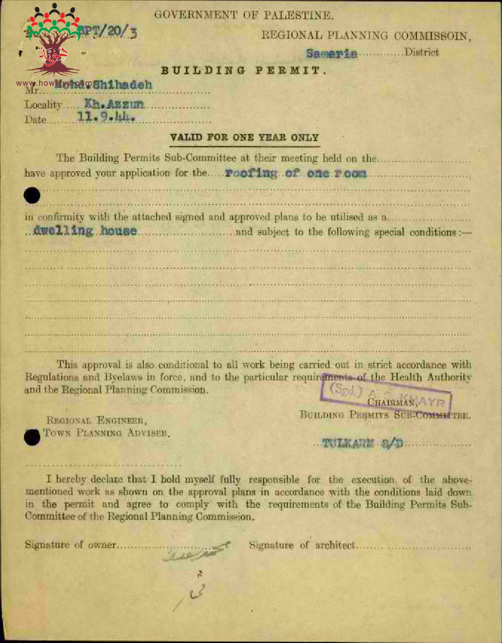 طلب رخصة بناء ل محمد شحادة-عزون