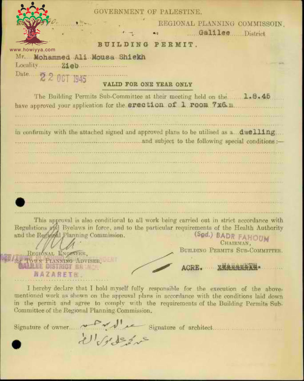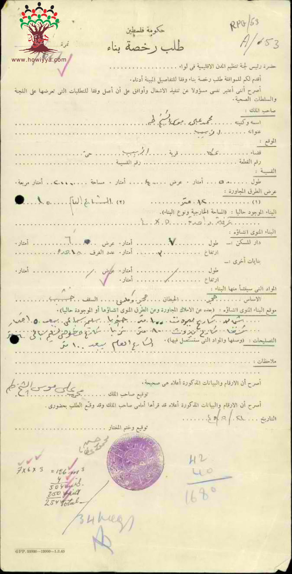 طلب رخصة بناء ل محمد علي موسى الشيخ طه-الزيب