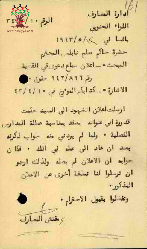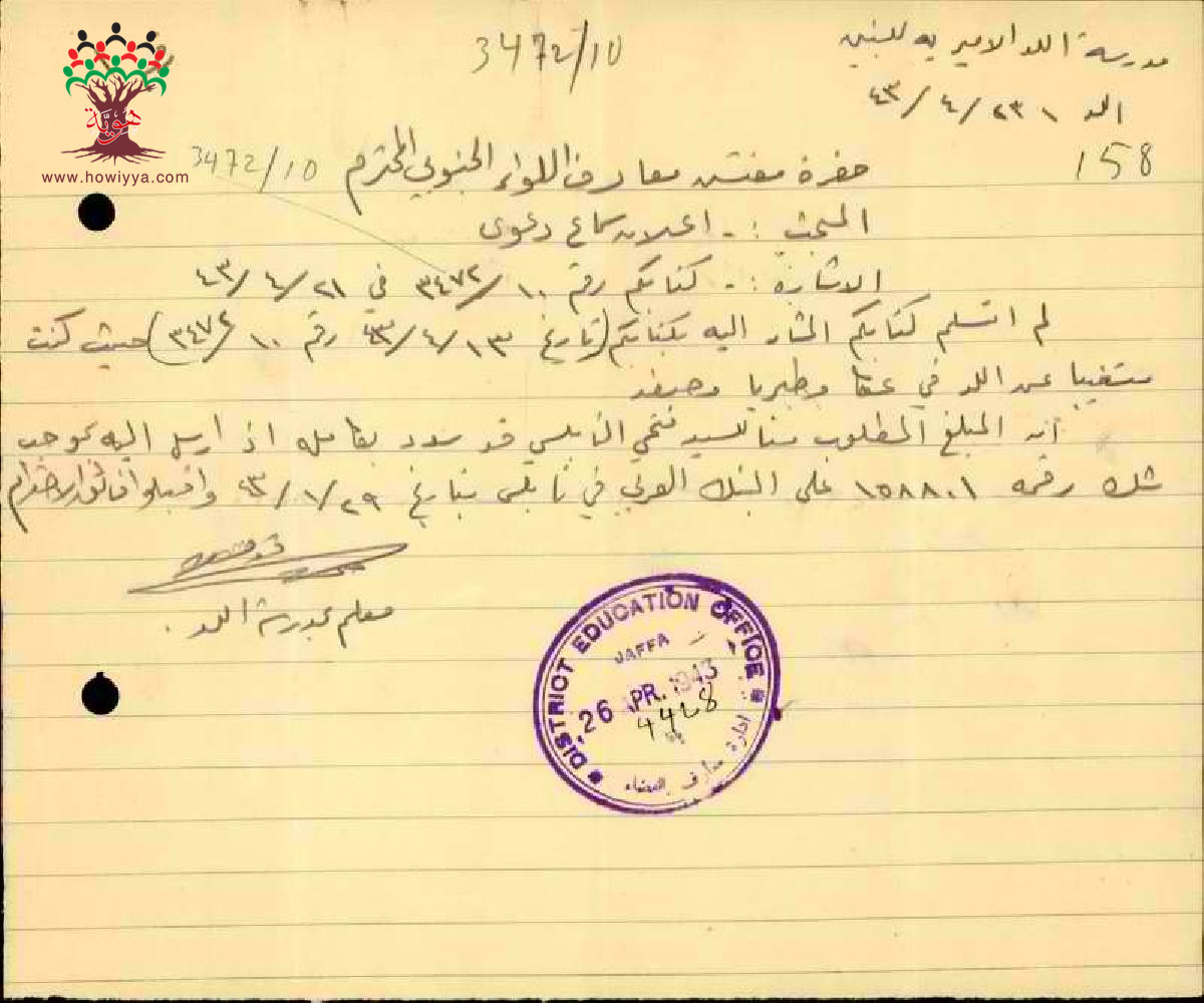 مجموعة رسائل بخصوص سماع دعوى المحكمة للمعلم حكمت قدورة