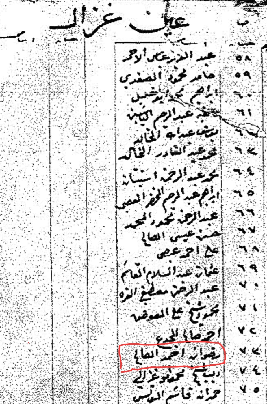 احصائية لبعض الاسماء من رجالات عين غزال من بينهم رضوان احمد الصالح رضوان