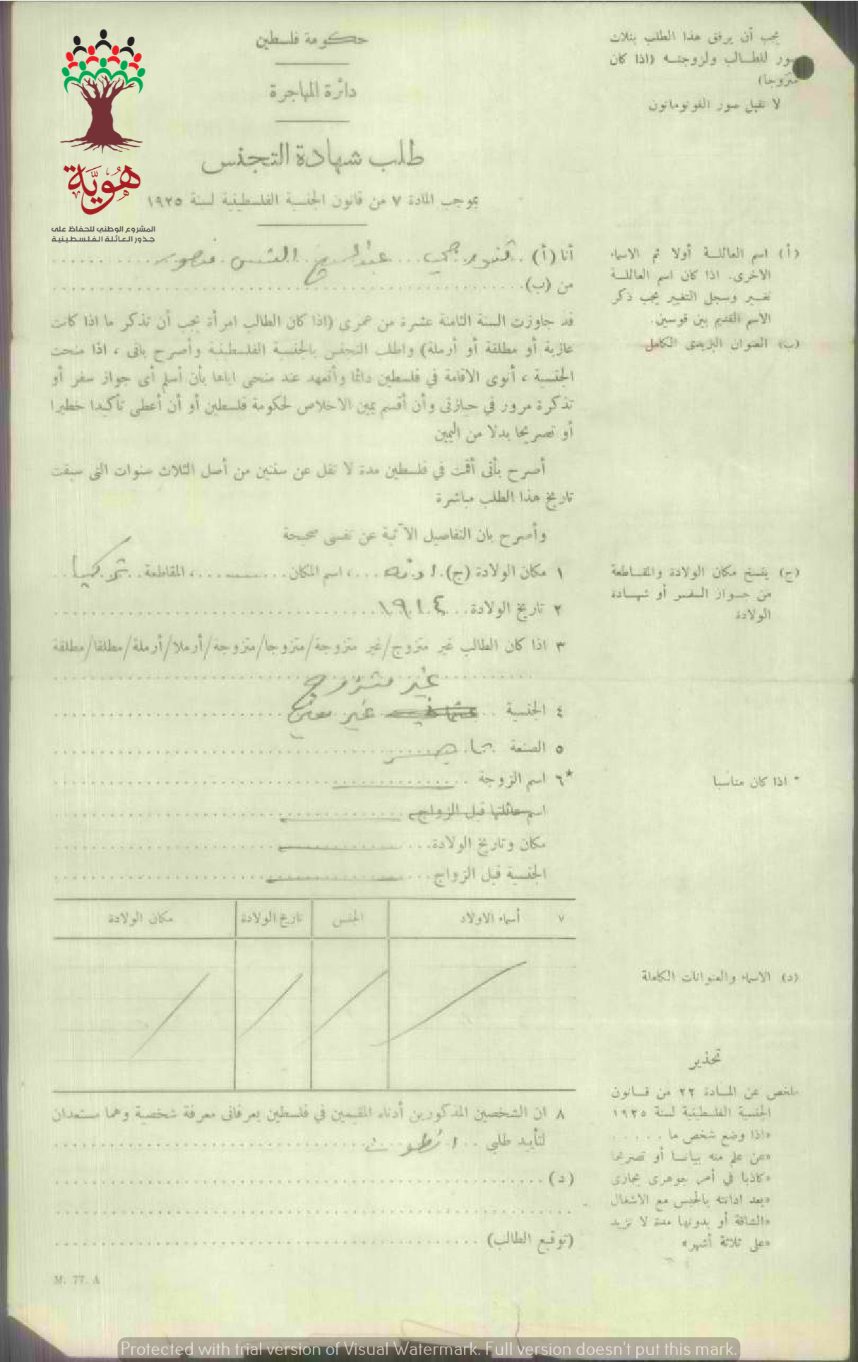 طلب شهادة الجنسية الفلسطينية-عبد المسيح تنوردجي-القدس/تركيا