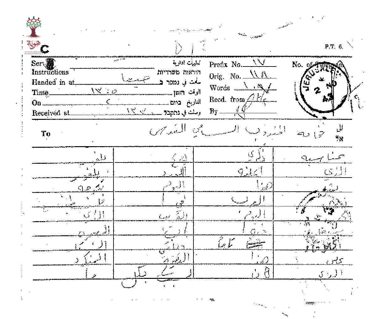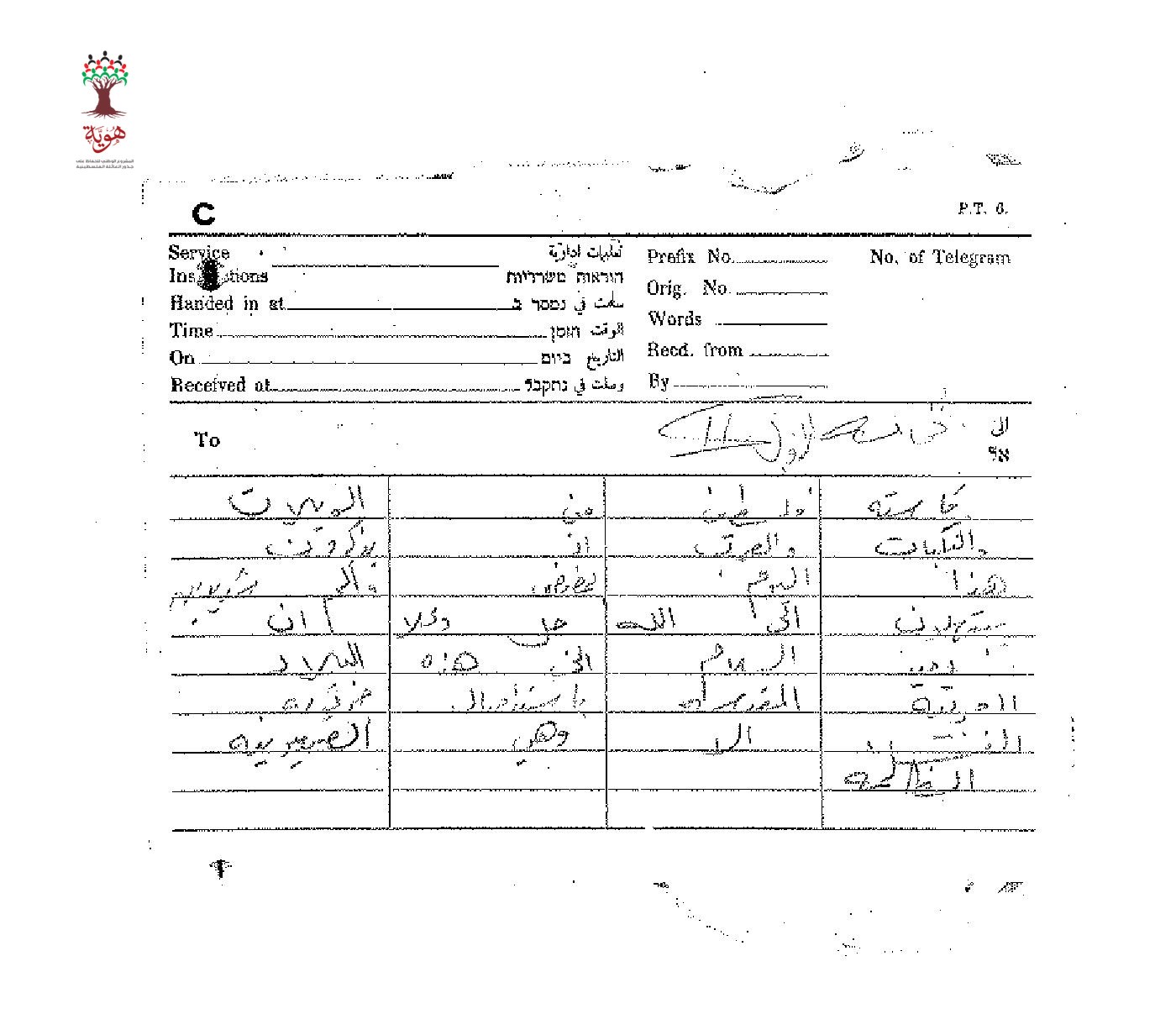 تلغراف مرسل من أهالي حيفا الى المندوب السامي احتجاجا على وعد بلفور مطالبين بإلغائه لظلمه بحق العرب.