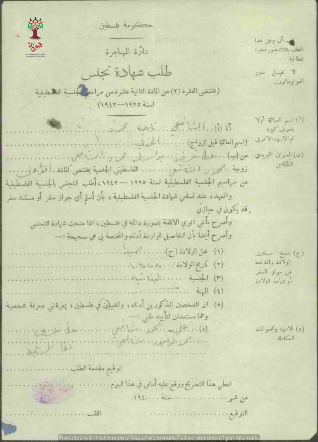 طلب الجنسية الفلسطينية-ناجية الشافعي خولي-عكا/لبنان