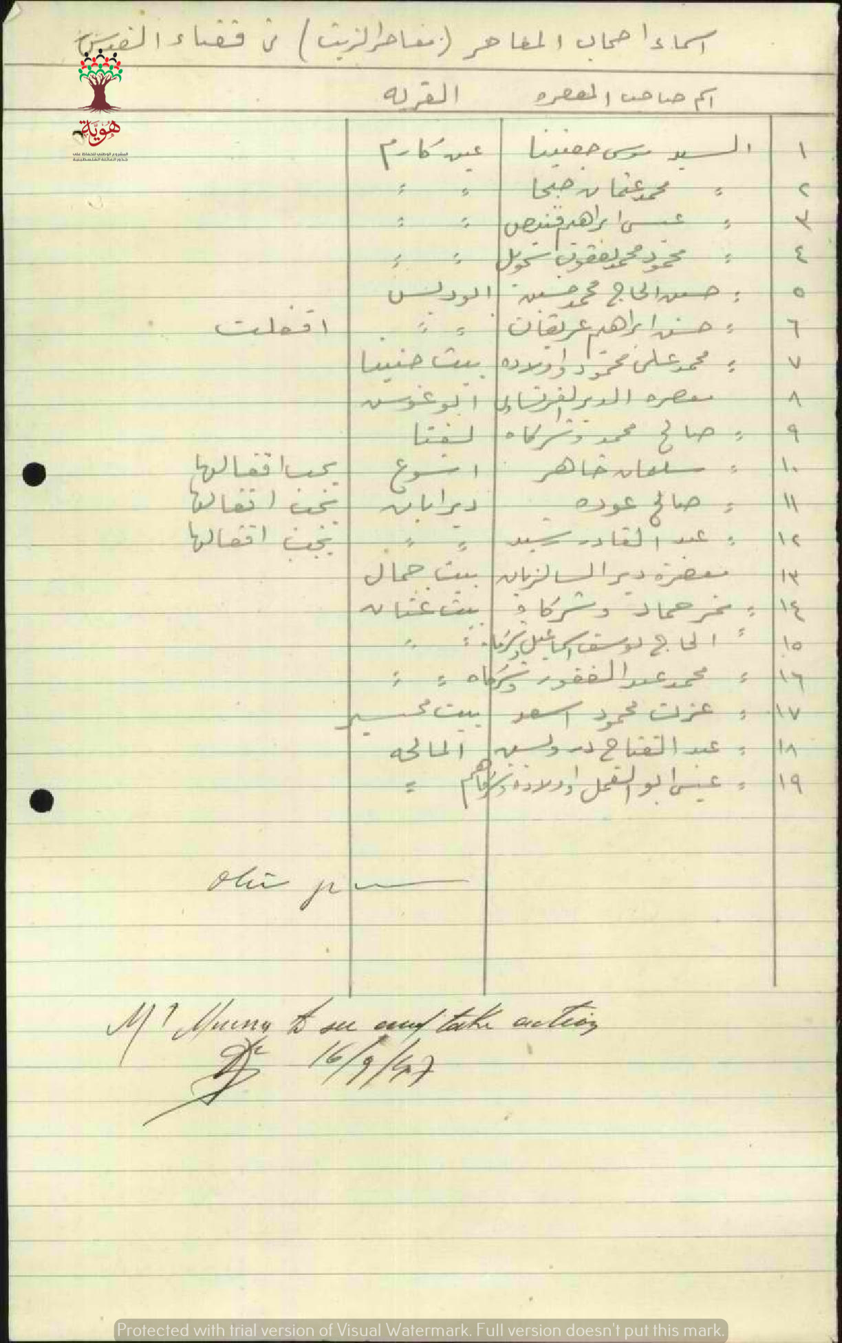 موسى جعنينا-محمد صبحة-عيسى ابراهيم قنص-محمود محمد سحويل-حسن محمد الهبش-حسن عريقات-محمد علي محمود-صالح محمد-سليمان ضاهر-صالح عودة-عبد القادر رشيد-نمر حماد-يوسف اسماعيل-محمد عبد الغفور-عزت محمود أسعد-عبد الفتاح درويش-عيسى كامل