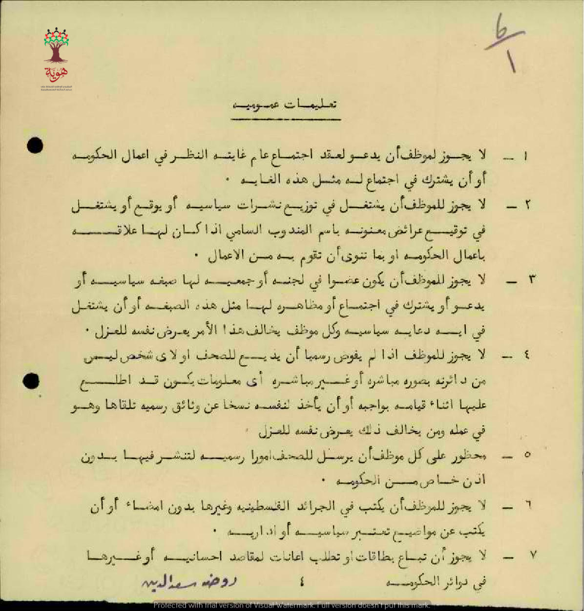 تعليمات عمومية من قبل دائرة المعارف للمعلمة روضة سعد الدين - صفد - مدرسة طبريا