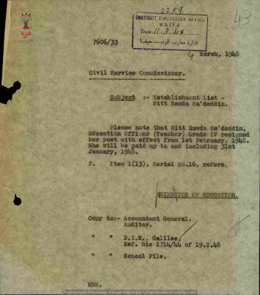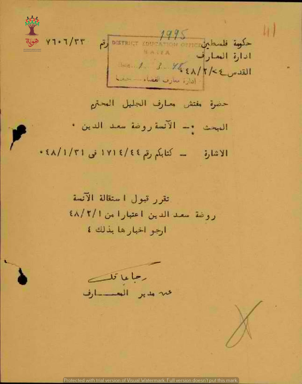 مجموعة رسائل بخصوص قبول استقالة المعلمة روضة سعد الدين