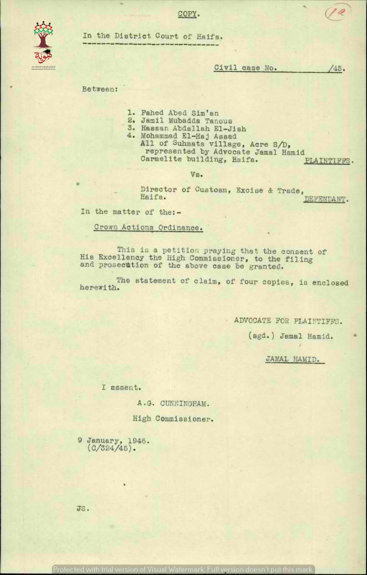 دعوى حكومية ضد بعض الأشخاص من سحماتا بسبب تهريب جمال وبغال الى لبنان والتي كانت محملة بالبضائع.