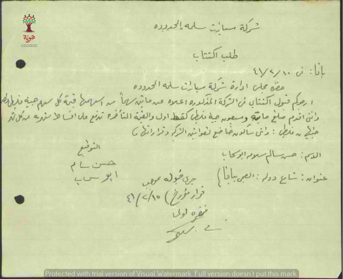 طلب اكتتاب في شركة سيارات سلمة مقدم من حسن سالم سلامة أبو سحاب