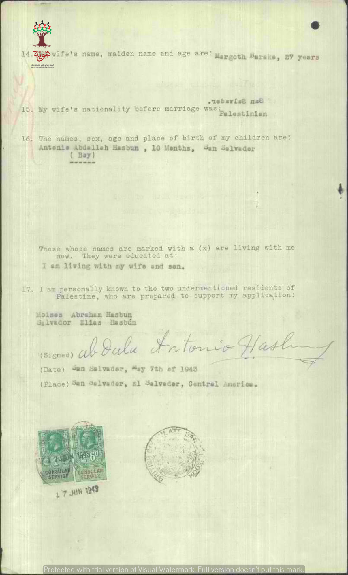طلب الجنسية الفلسطينية-عبد الله انطون حزبون-بيت لحم/السلفادور