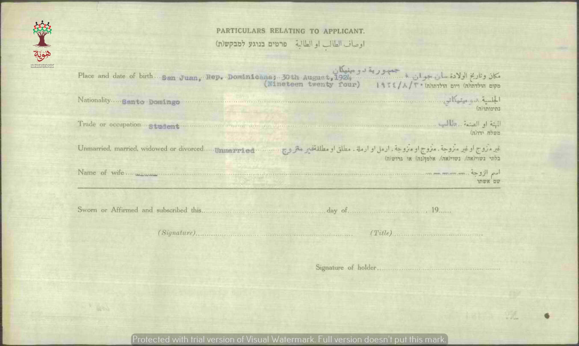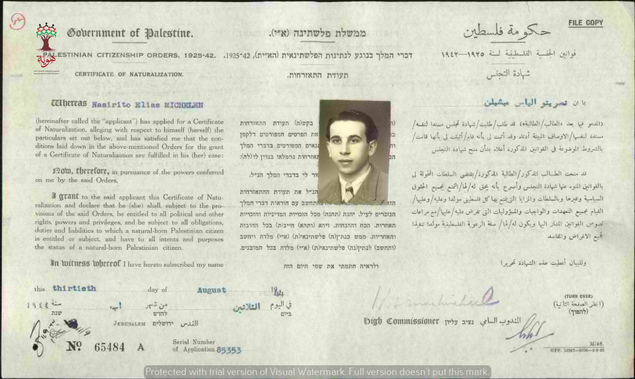 شهادة الجنسية الفلسطينية ل نصريتو ميشيلن