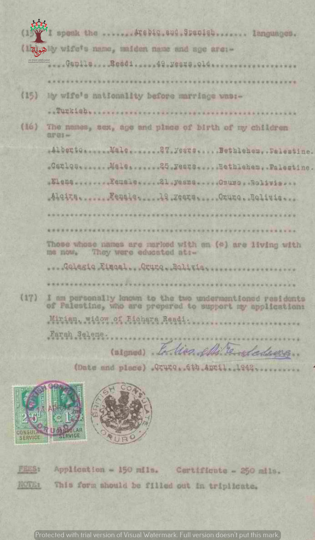 طلب الجنسية الفلسطينية-الياس متري سلامة-بيت لحم/تركيا