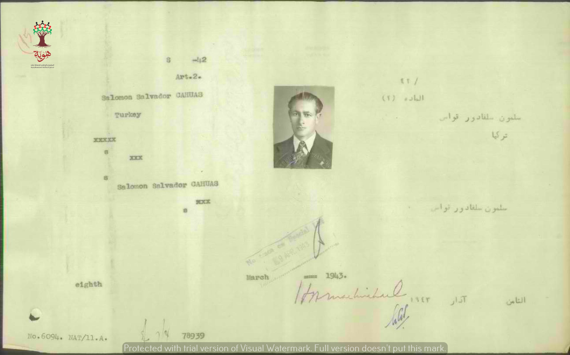 ورقة بيانات سلمون سلفادور قواس المرفقة بطلب الجنسية