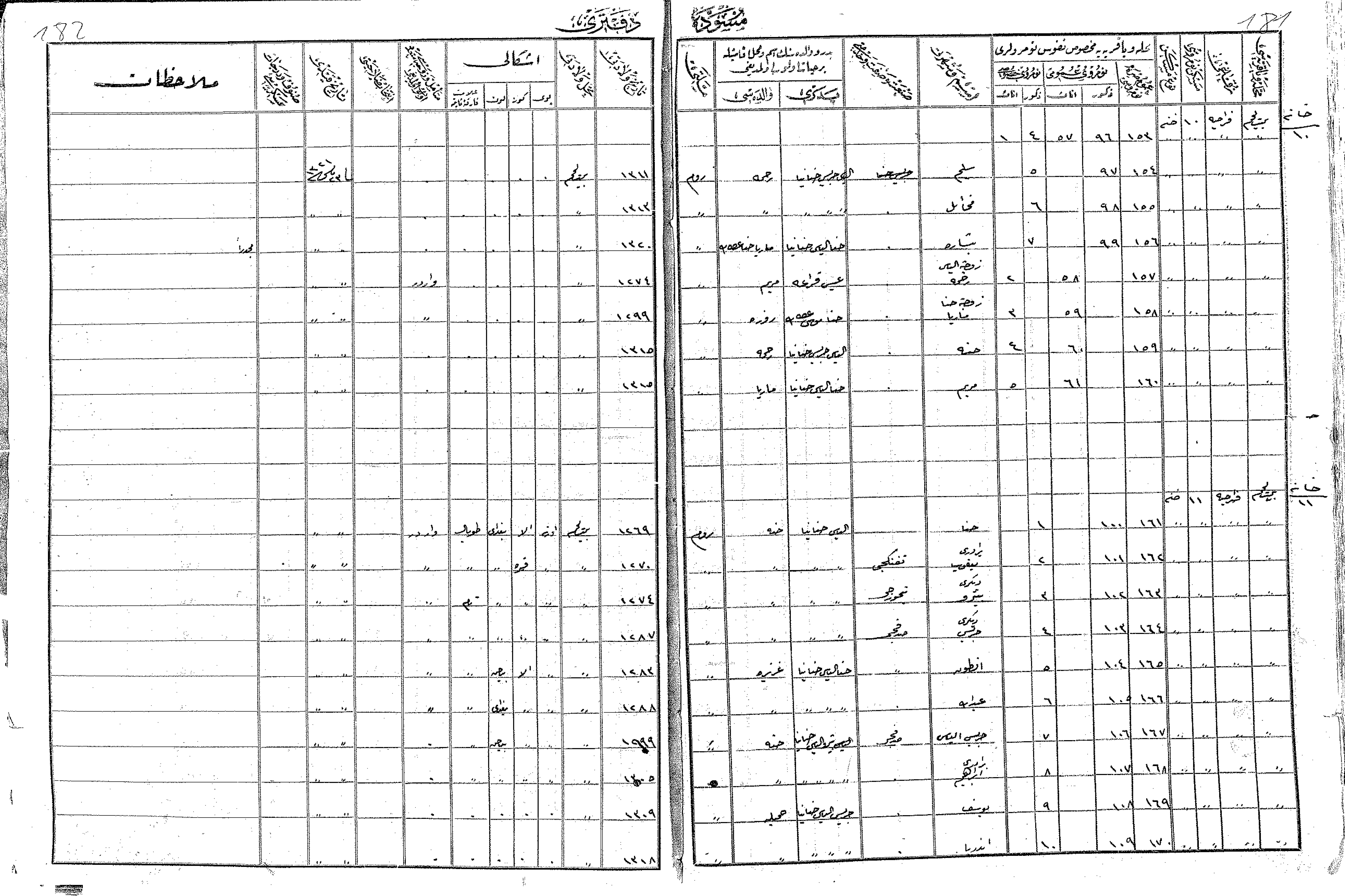بيانات عائلة حنانيا - بيت لحم في سجلات النفوس العثمانية: