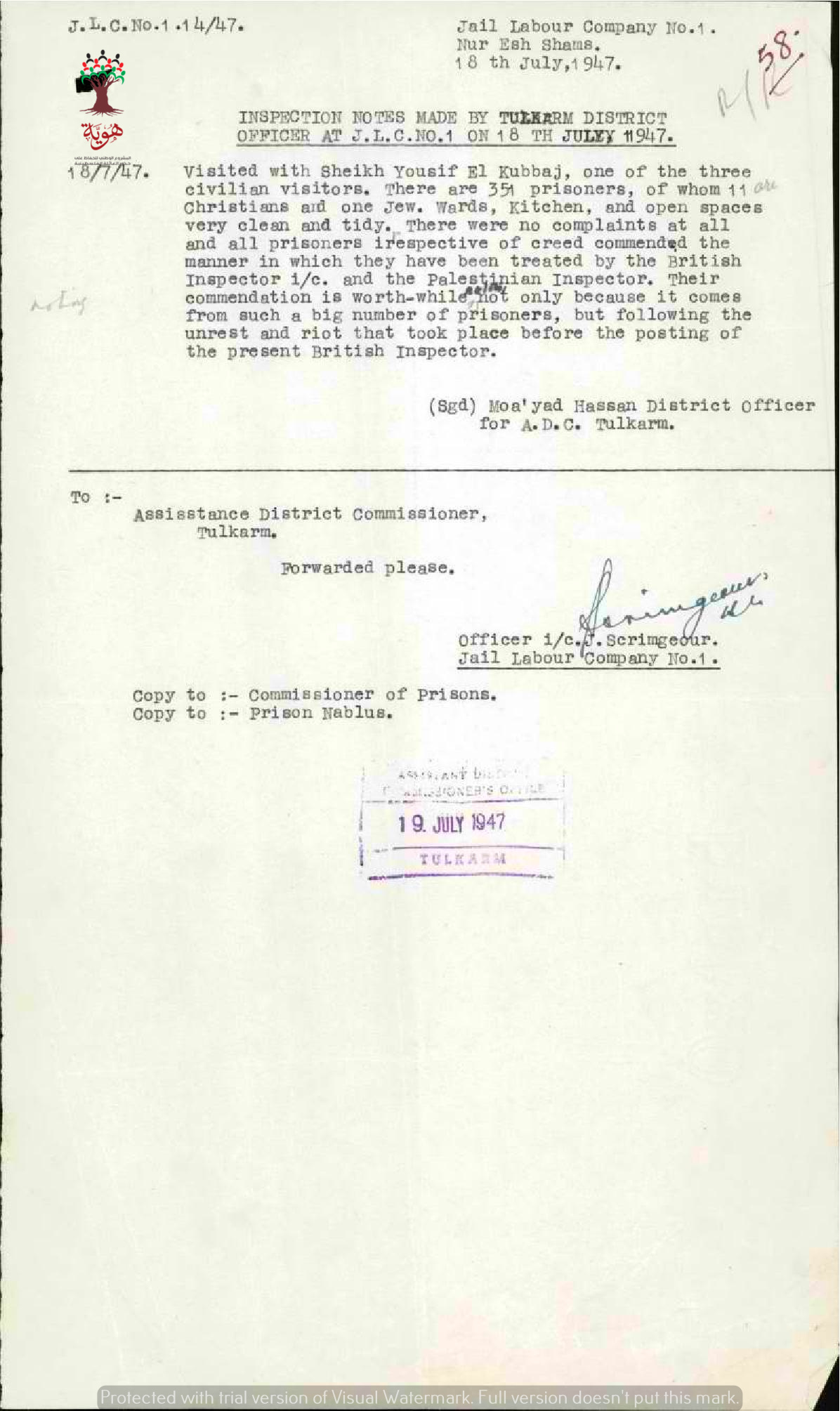 تقرير عن وضع سجن نور شمس في طولكرم