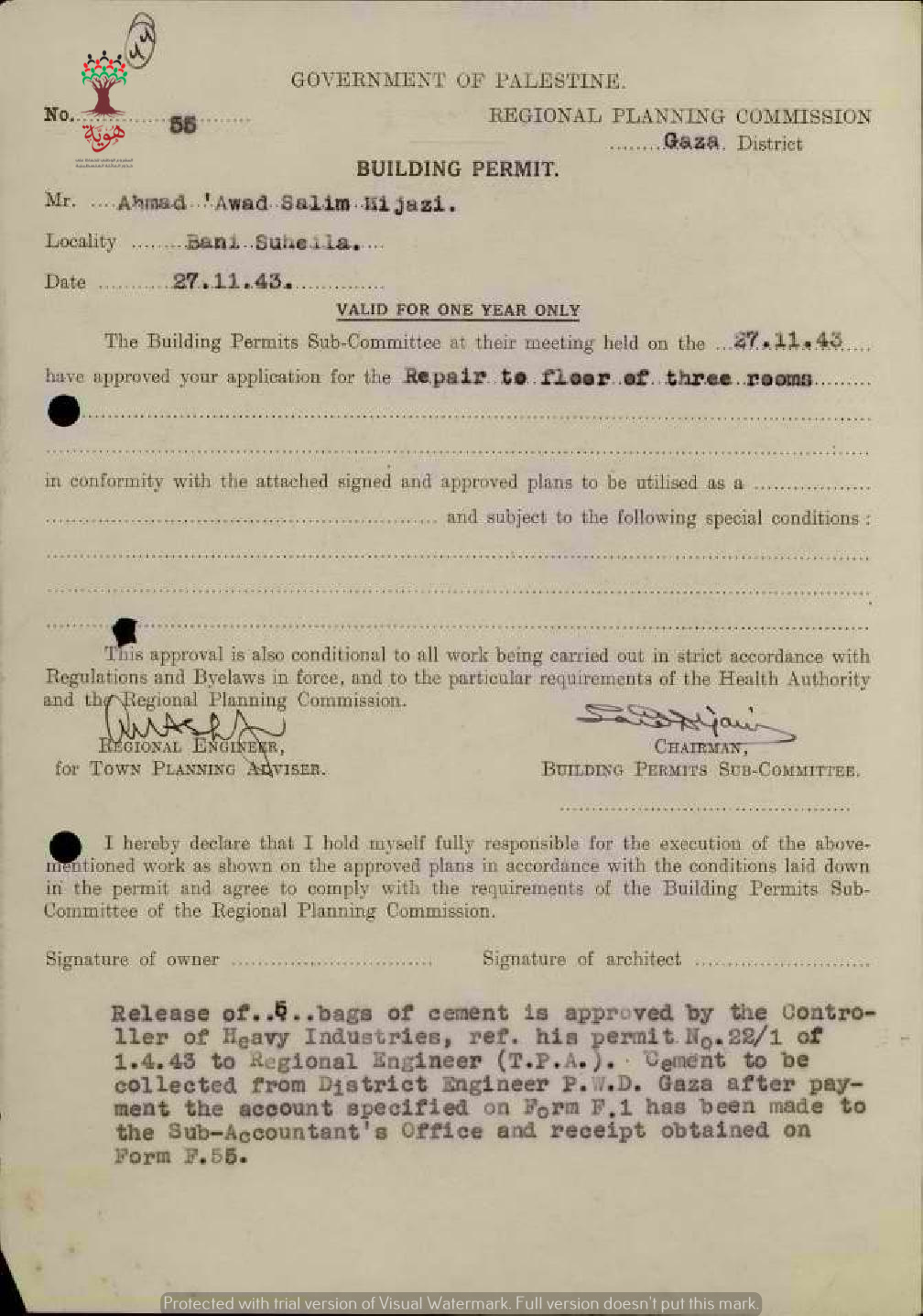 طلب رخصة بناء ل أحمد عوض سليم حجازي-بني سهيلة