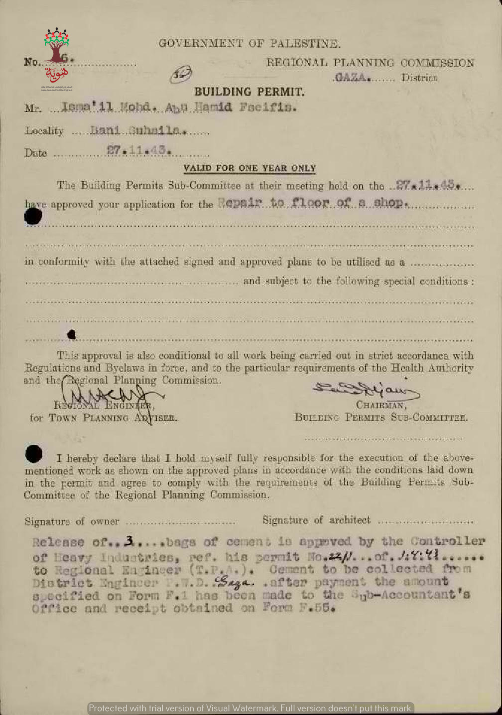 طلب رخصة بناء ل اسماعيل محمد أبو حميد فسيفس-بني سهيلة