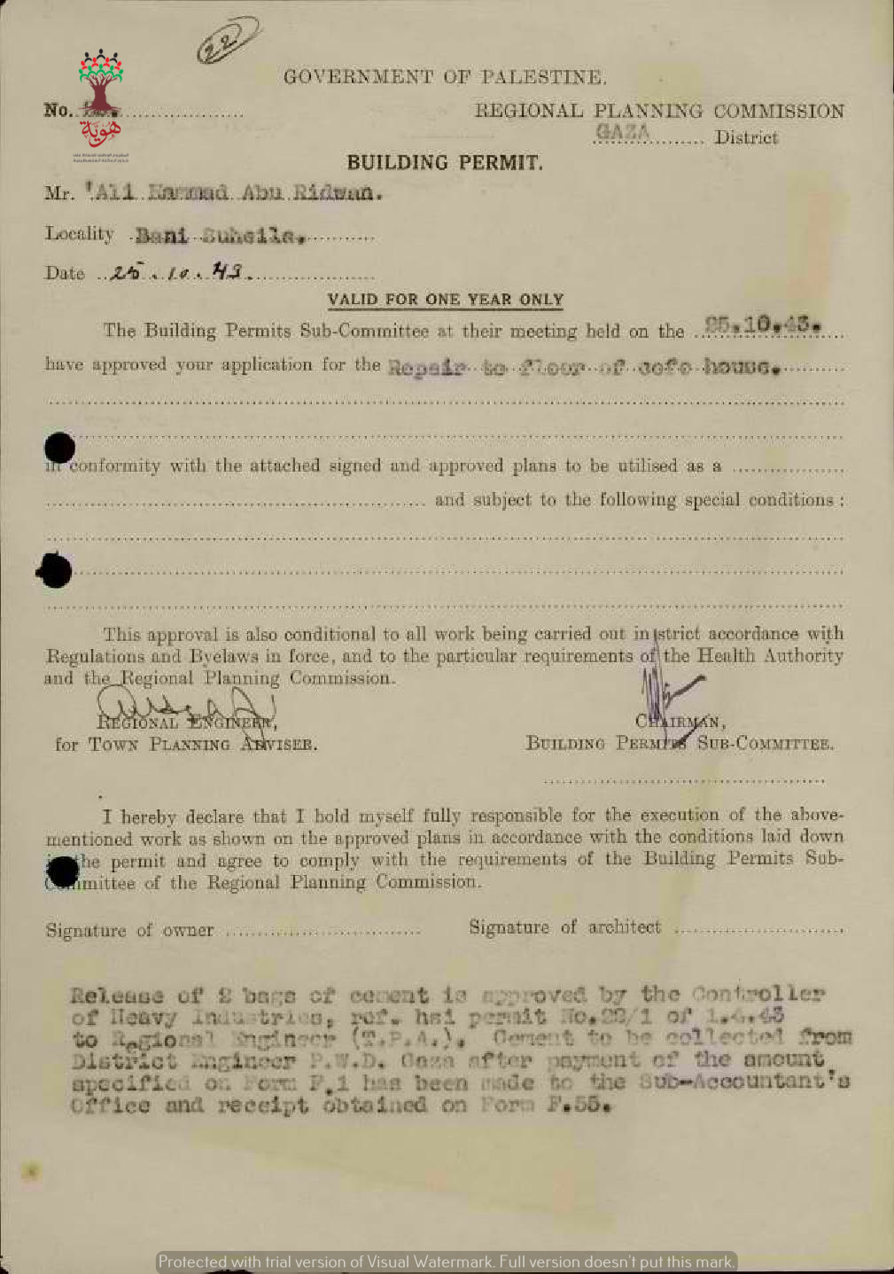 طلب رخصة بناء ل علي حماد أبو رضوان-بني سهيلة
