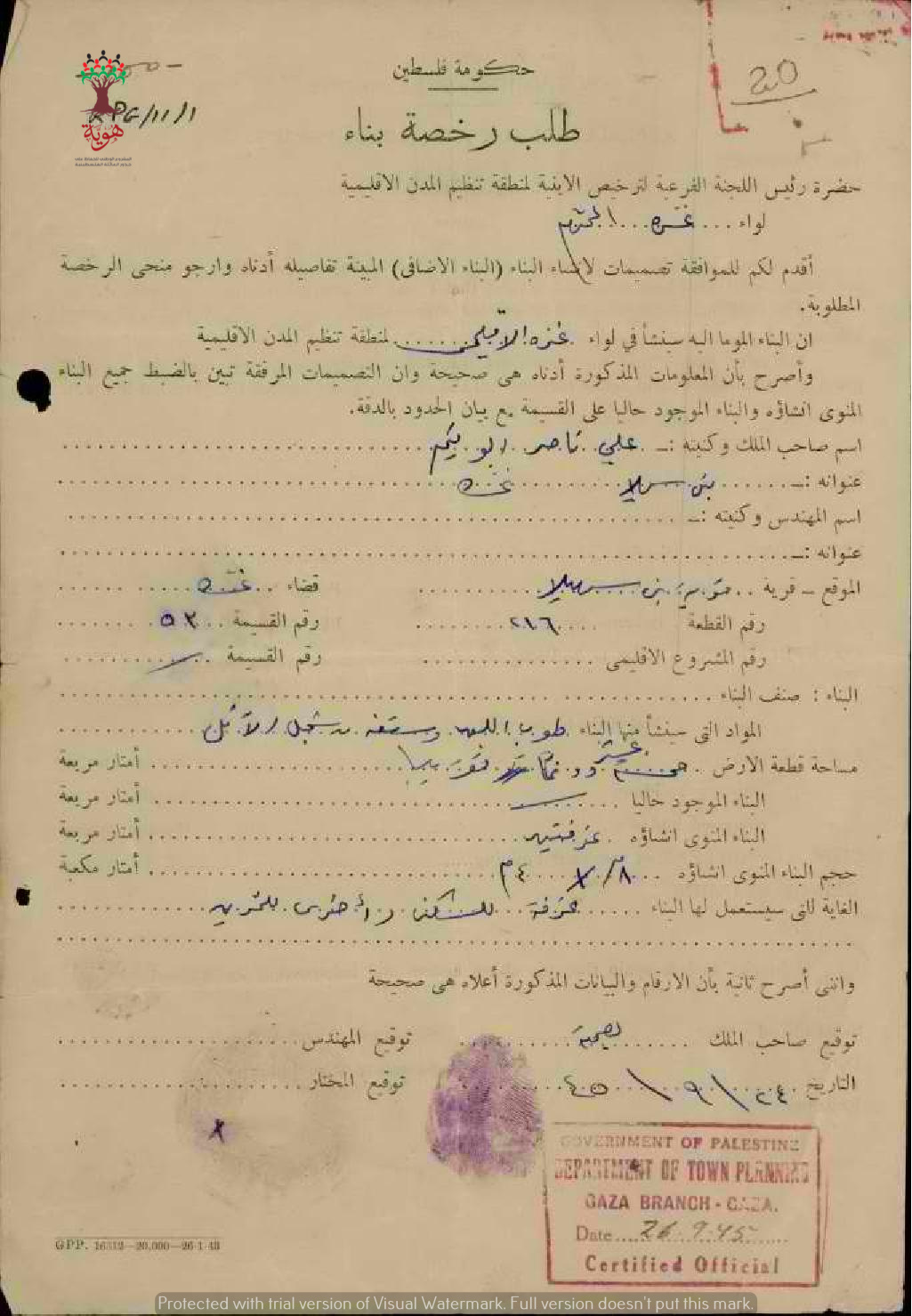 طلب رخصة بناء ل علي ناصر أبو تيم-بني سهيلة