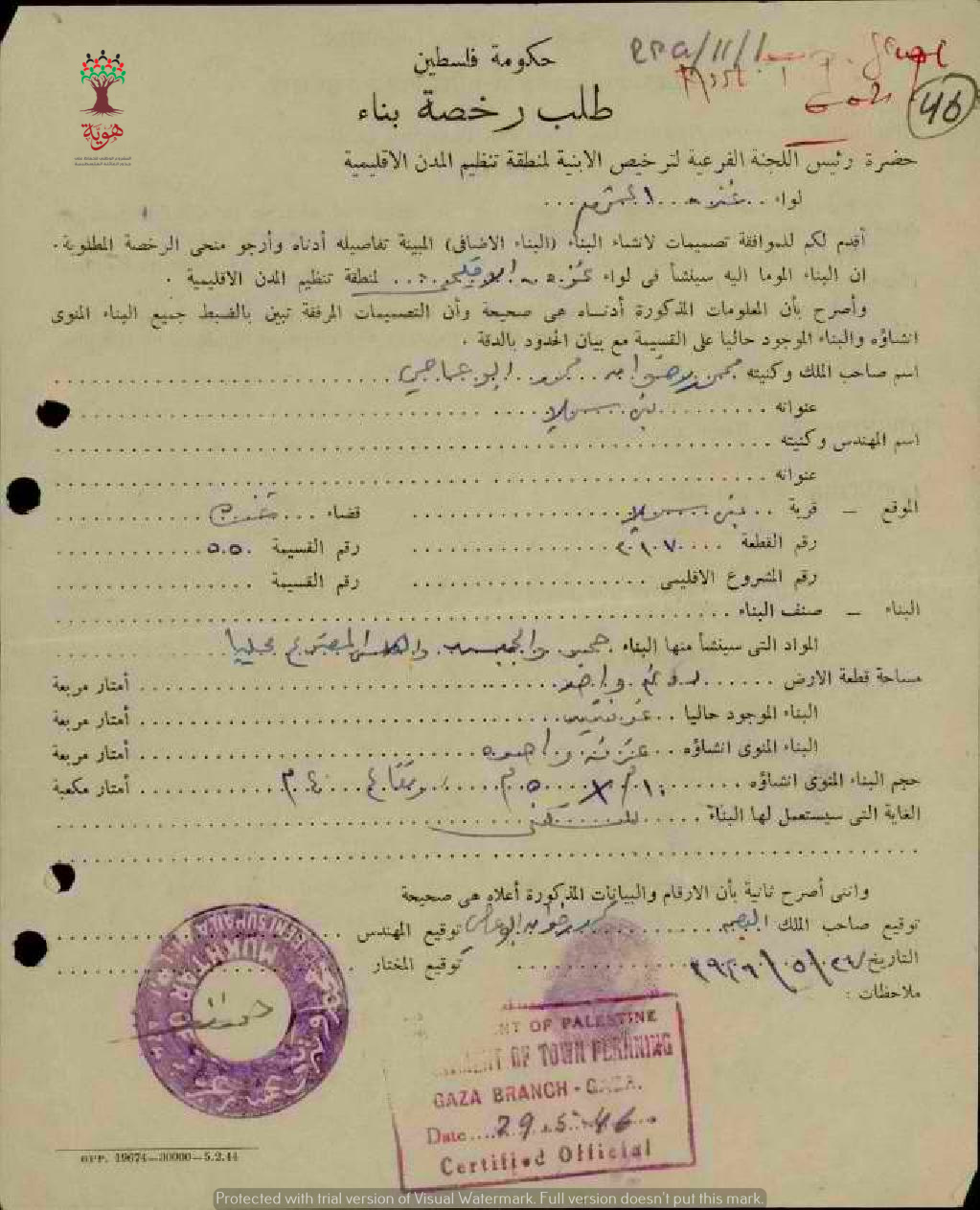 طلب رخصة بناء ل محمد رضوان محمد أبو عاصي-بني سهيلة