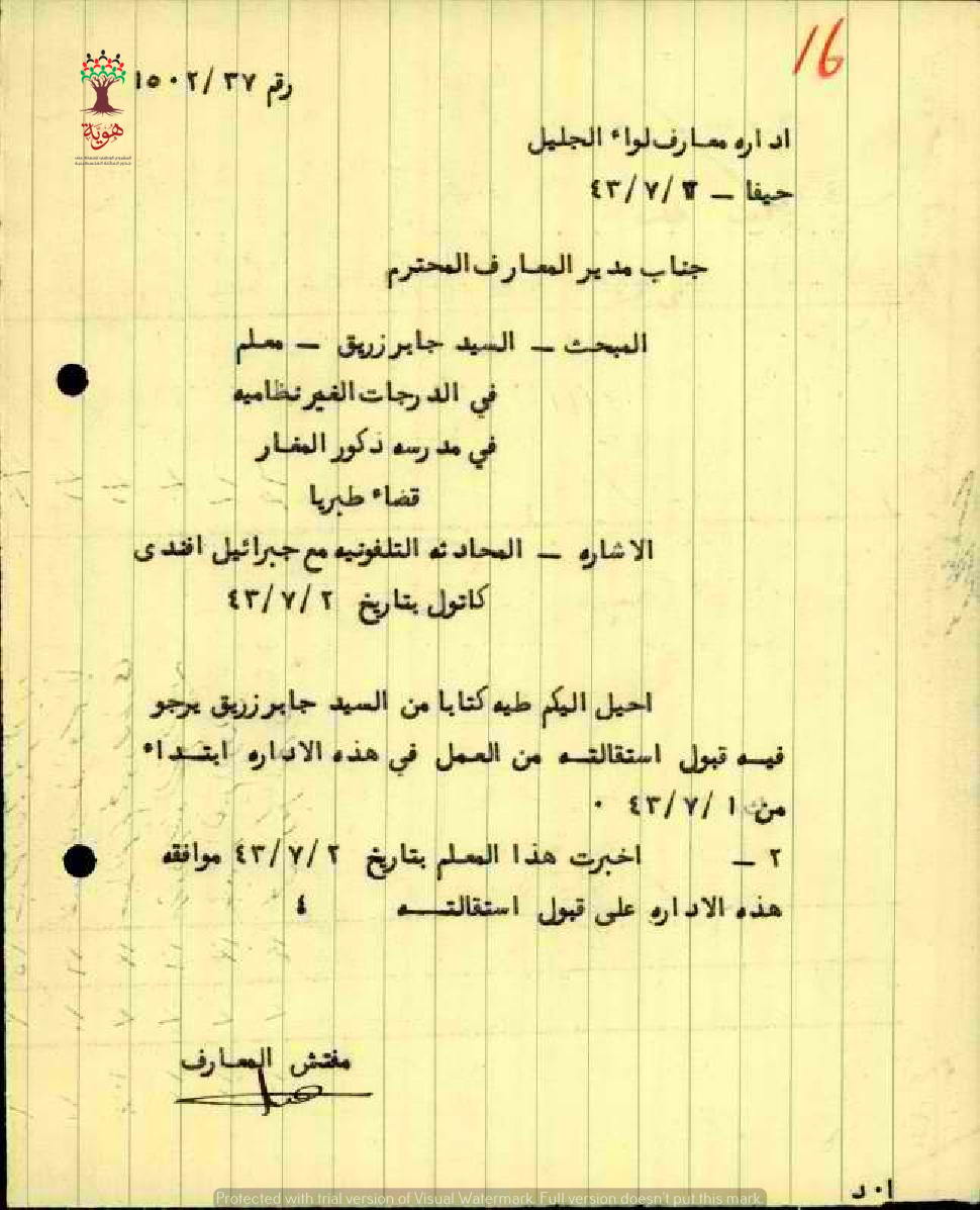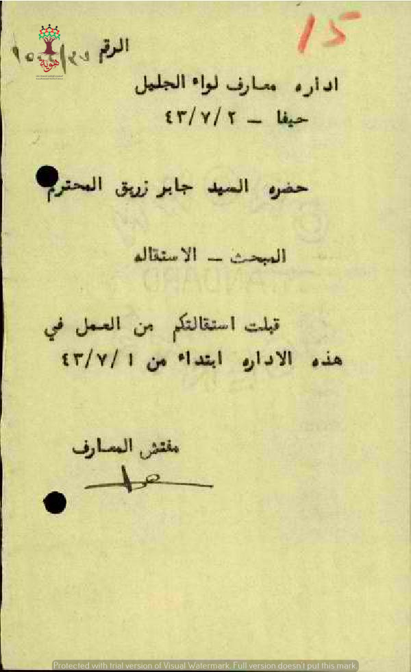 رسائل بخصوص استقالة المعلم جابر زريق