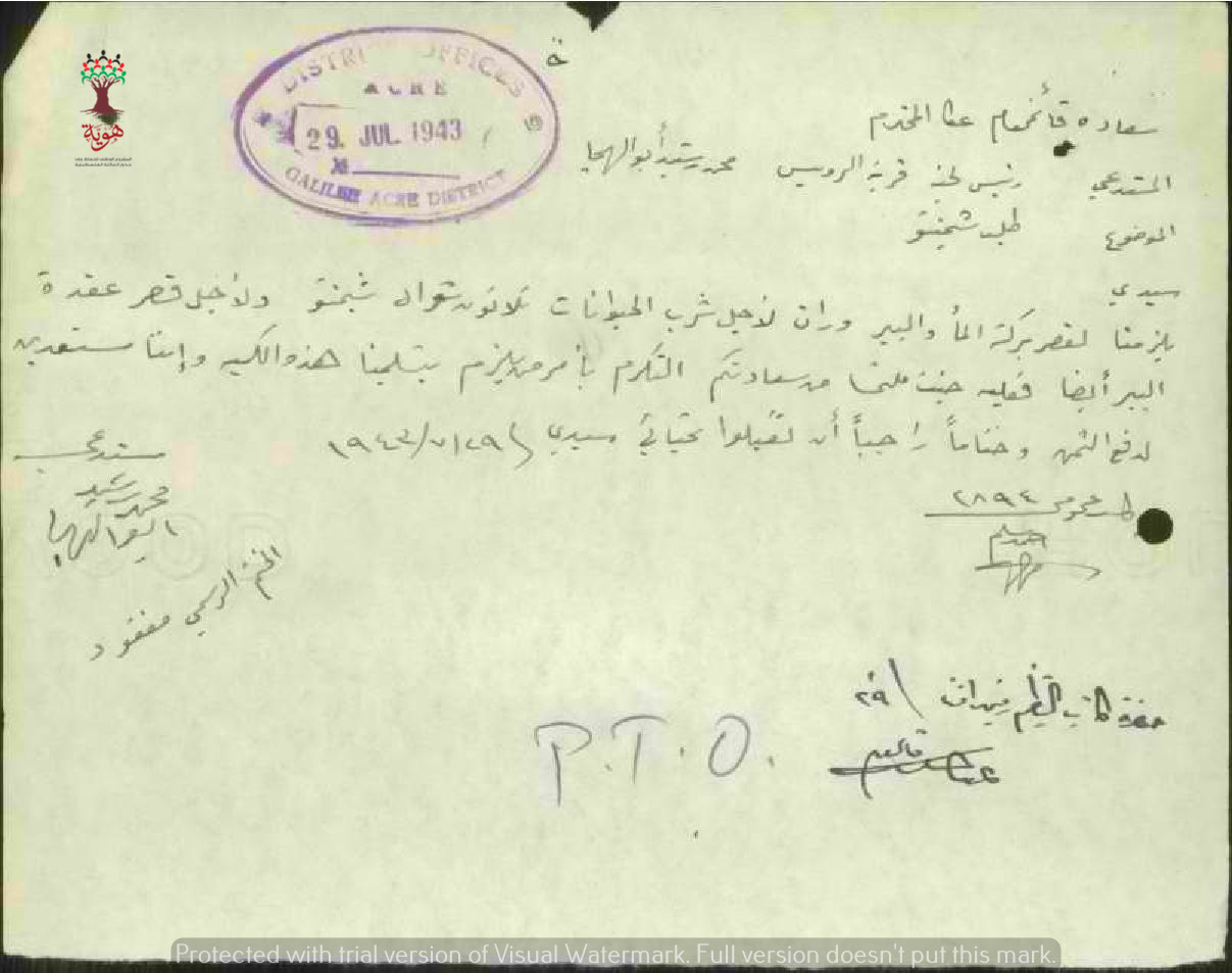 طلب اسمنت مقدم من محمد رشيد أبو الهيجا لبناء بركة وبئر ماء