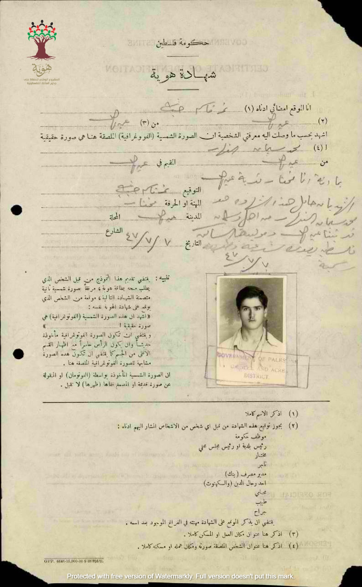 شهدة هوية محمد سليمان النهار - عين ماهل عام 1947