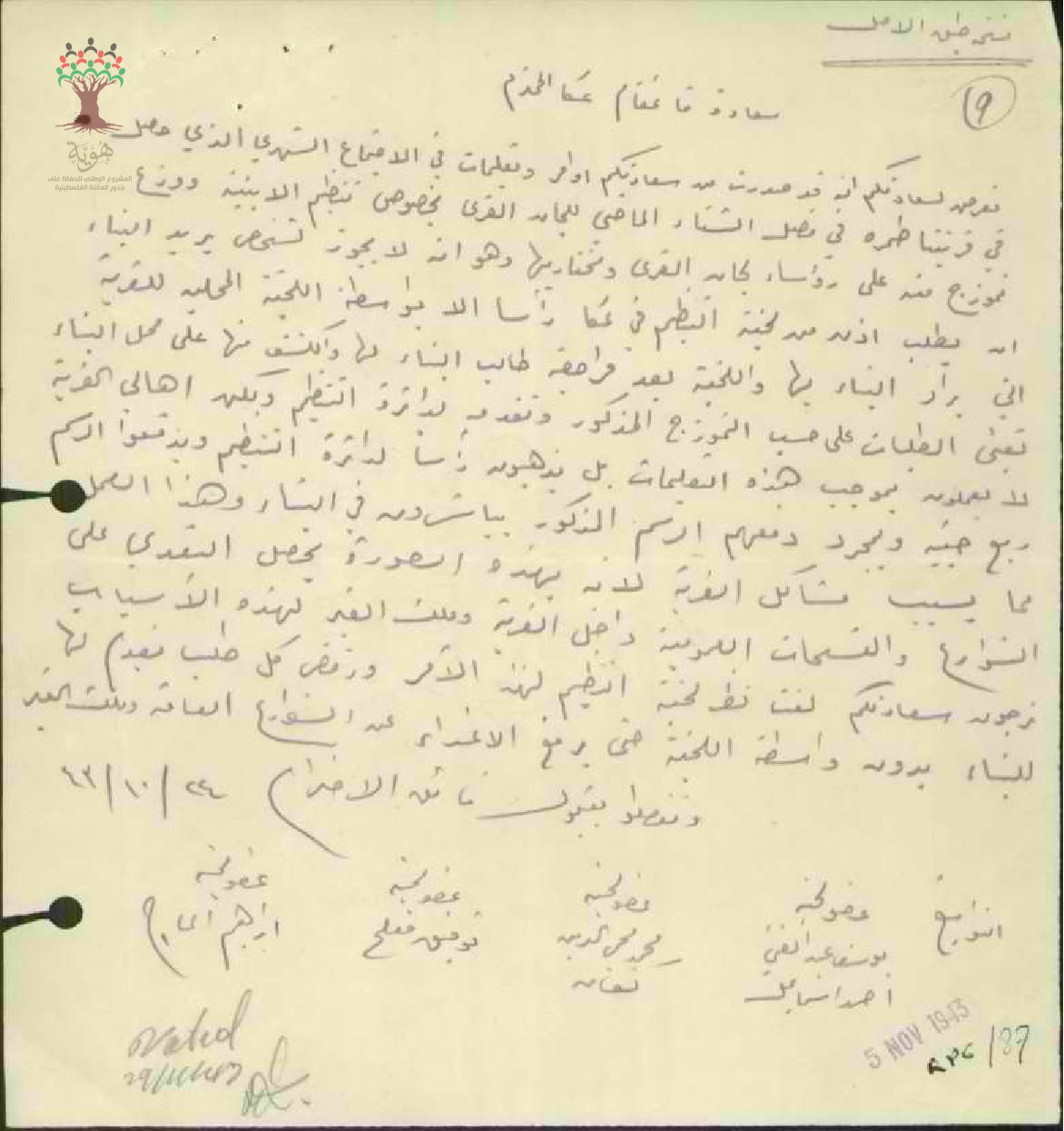 رسالة من اللجنة المحلية لقرية طمرة الى قائم مقام عكا بخصوص طلبات البناء في القرية