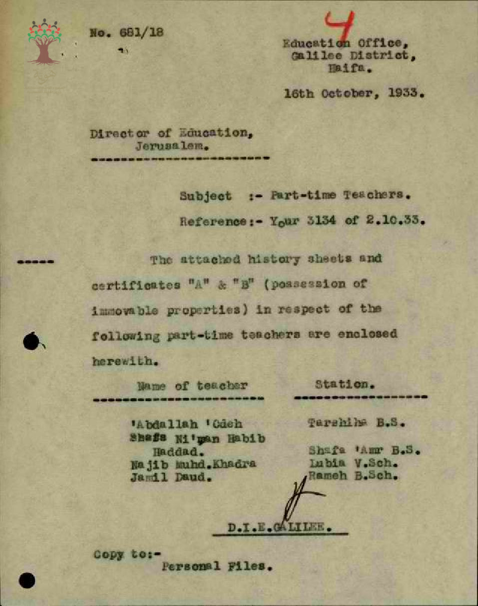 ورقة تعيين المعلم نعمان حبيب حداد في إدارة المعارف