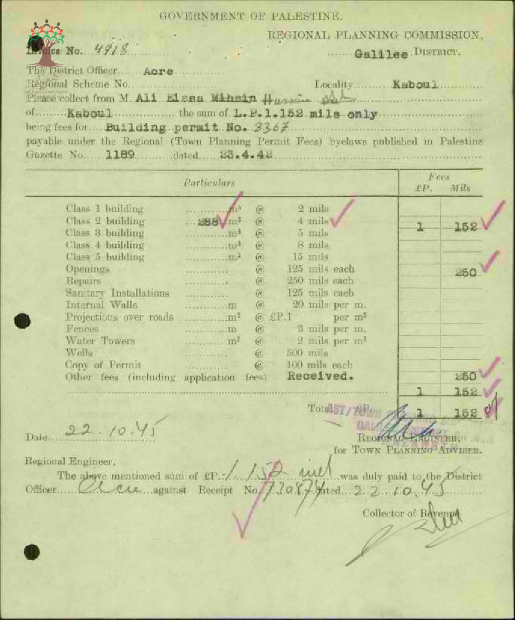 طلب مواد بناء لصالح علي عيسى حسين/كابول