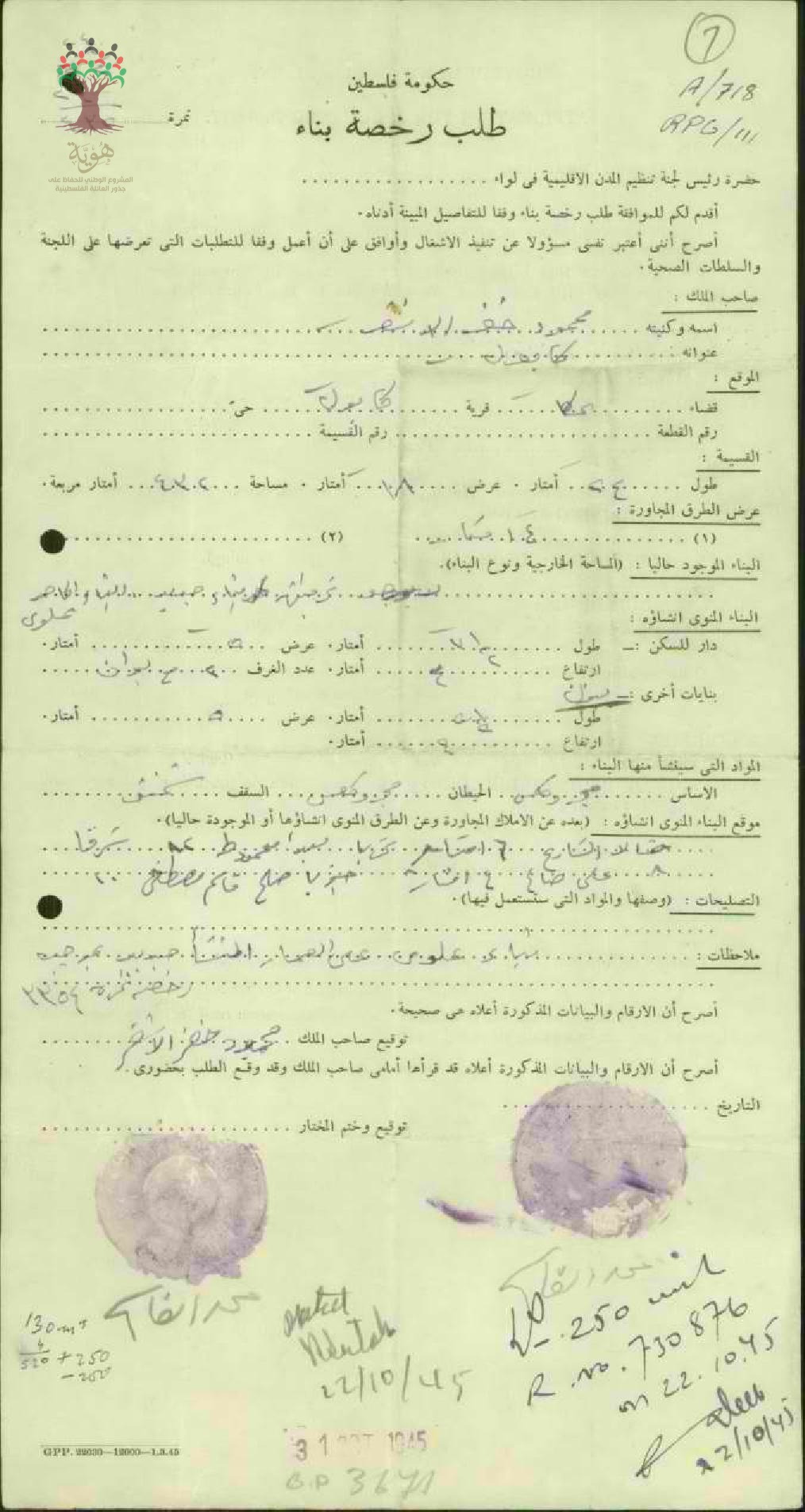 طلب رخصة بناء منزل للسكن ل محمود خضر أشقر-كابول