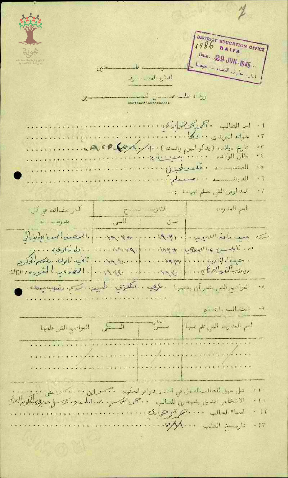 ورقة طلب عمل للمعلم أحمد حجازي / بيسان