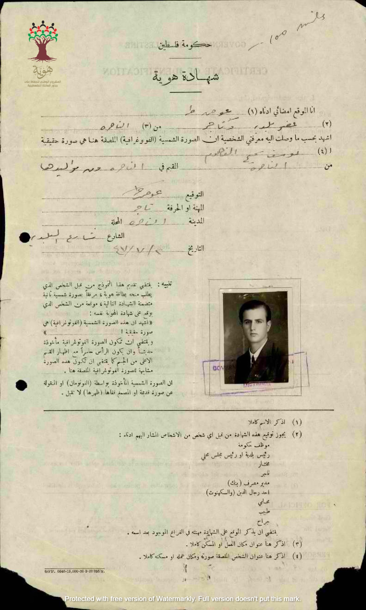 شهادة هوية يوسف سميح الفاهوم - الناصرة بتوقيع عضو البلدية عوض طه