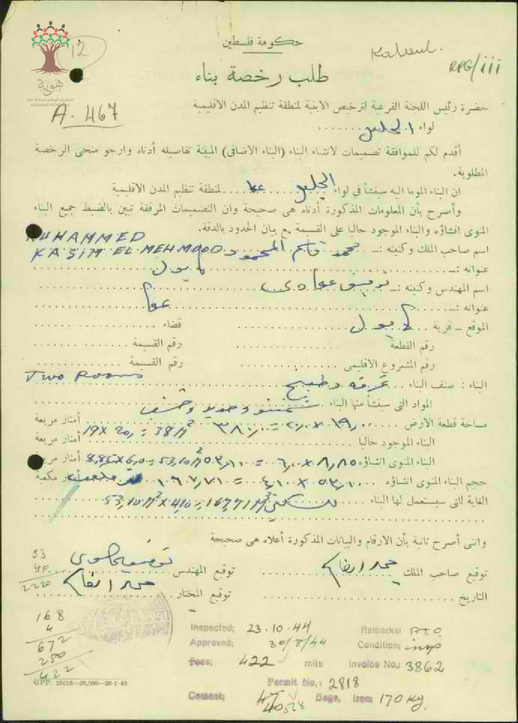 طلب رخصة بناء غرفتين للسكن ل محمد قاسم محمود-كابول