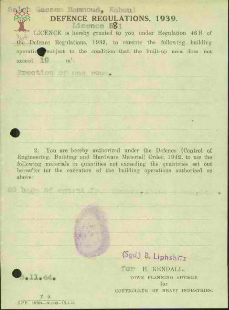 إذن بتسليم مواد بناء ل صالح قاسم حمود-كابول