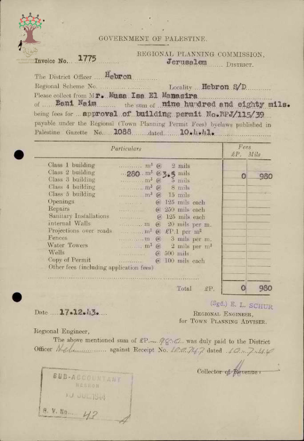 طلب مواد بناء لصالح موسى عيسى المناصرة/بني نعيم