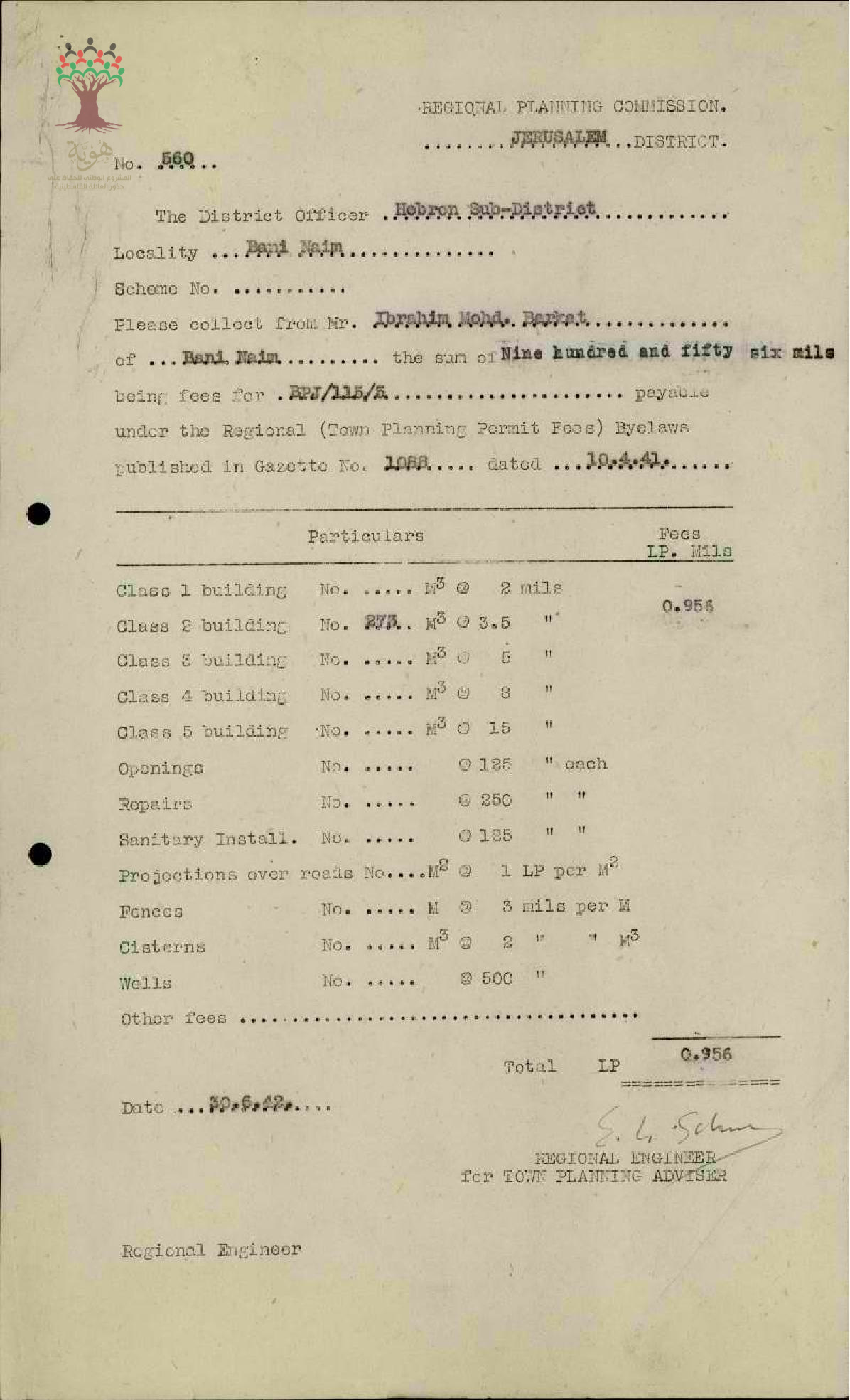 طلب مواد بناء لصالح إبراهيم محمد بركات/بني نعيم