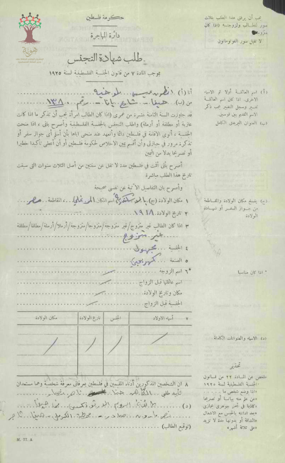 طلب الجنسية الفلسطينية-عيسى انطوان ملوخية-حيفا/مصر