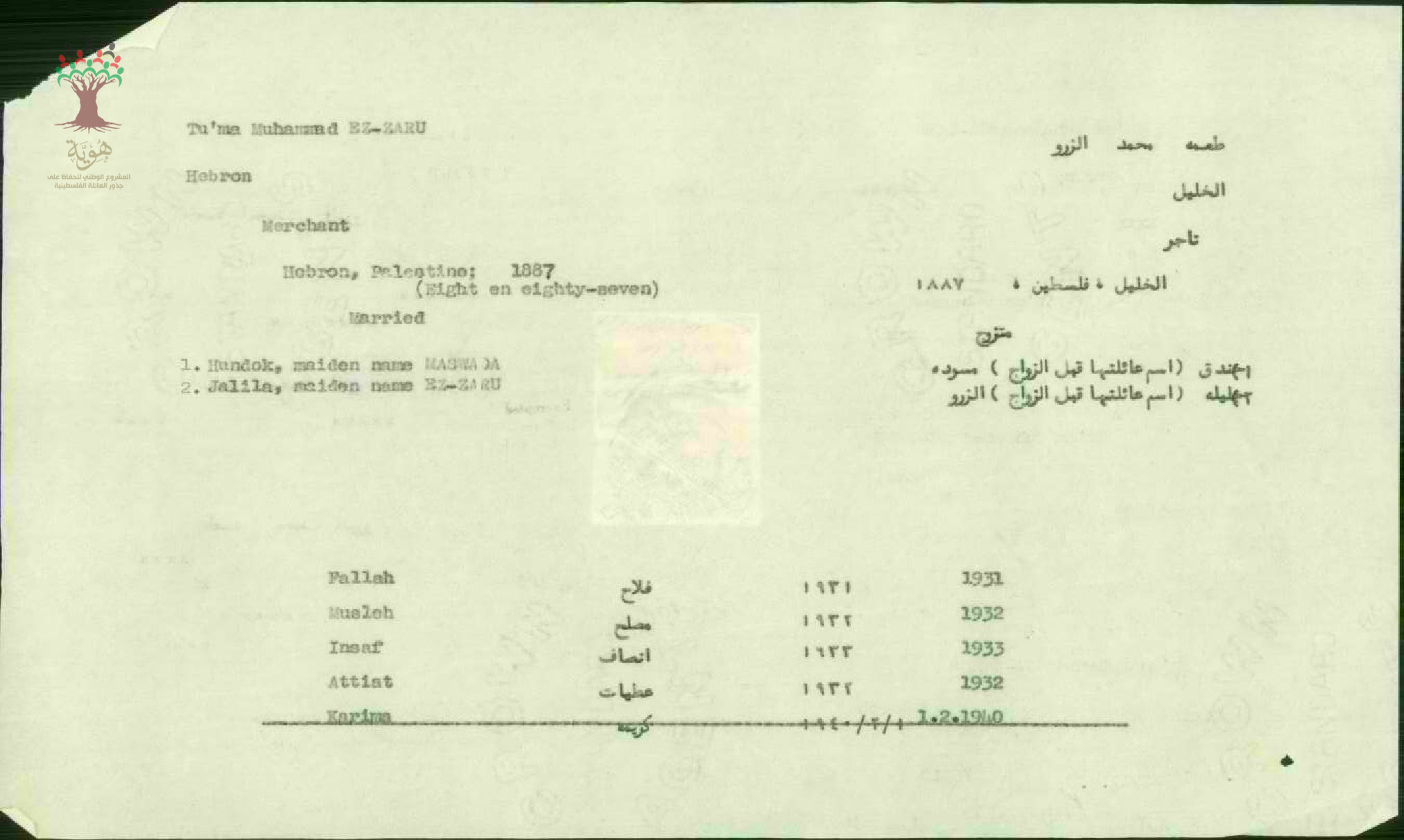 ورقة بيانات طعمة محمد الزرو المرفقة بطلب الجنسية