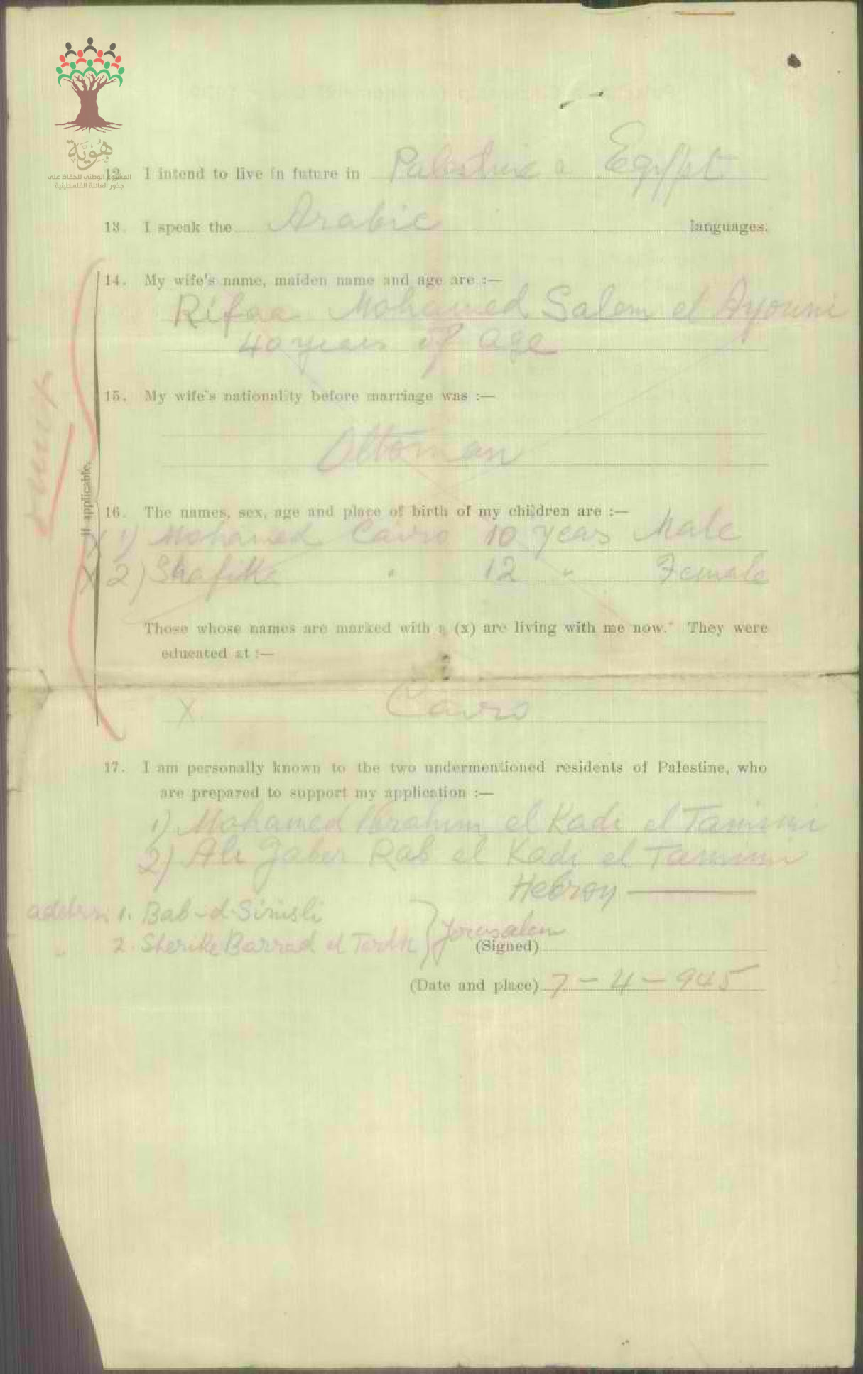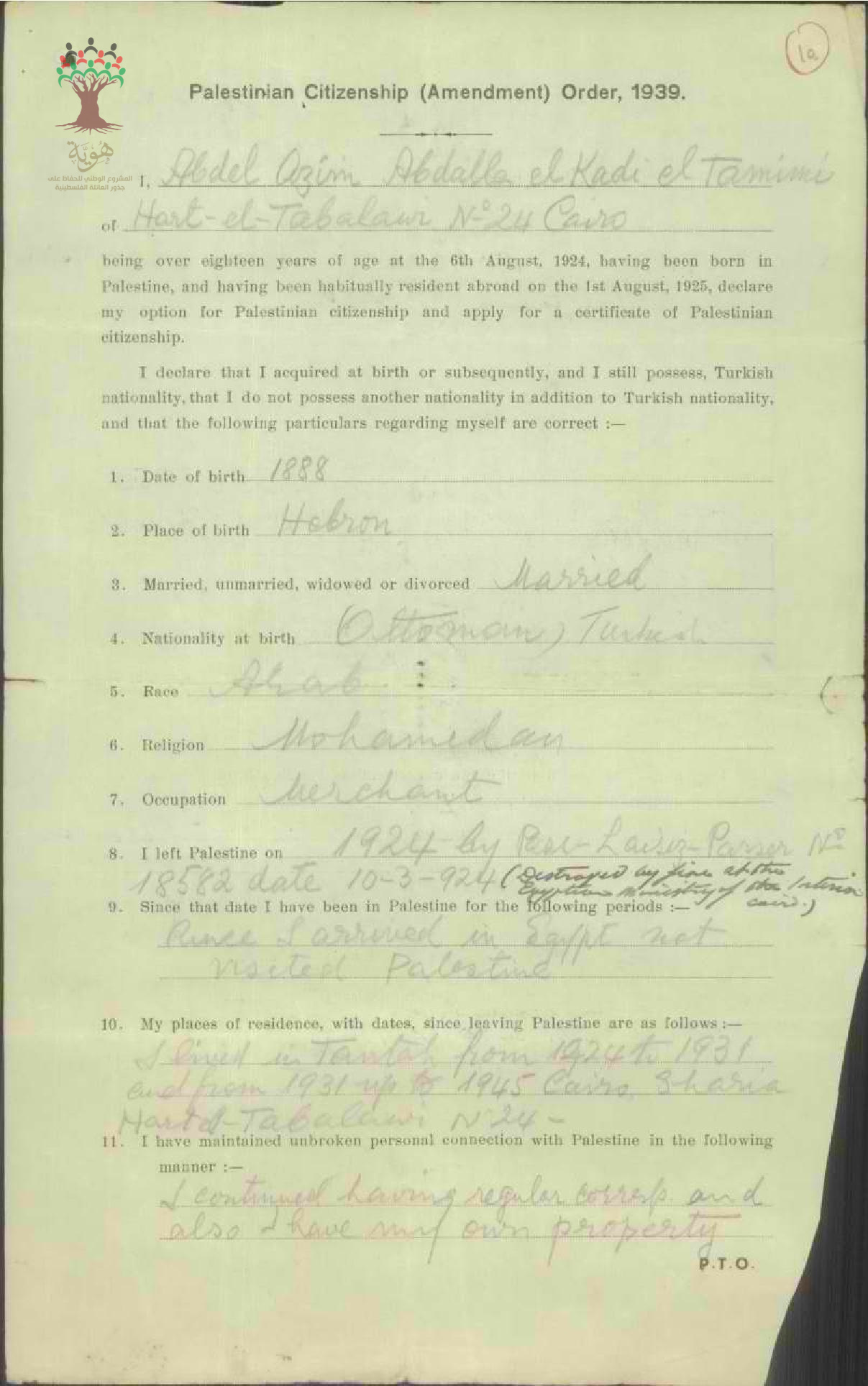 طلب الجنسية الفلسطينية-عبد العظيم التميمي-الخليل