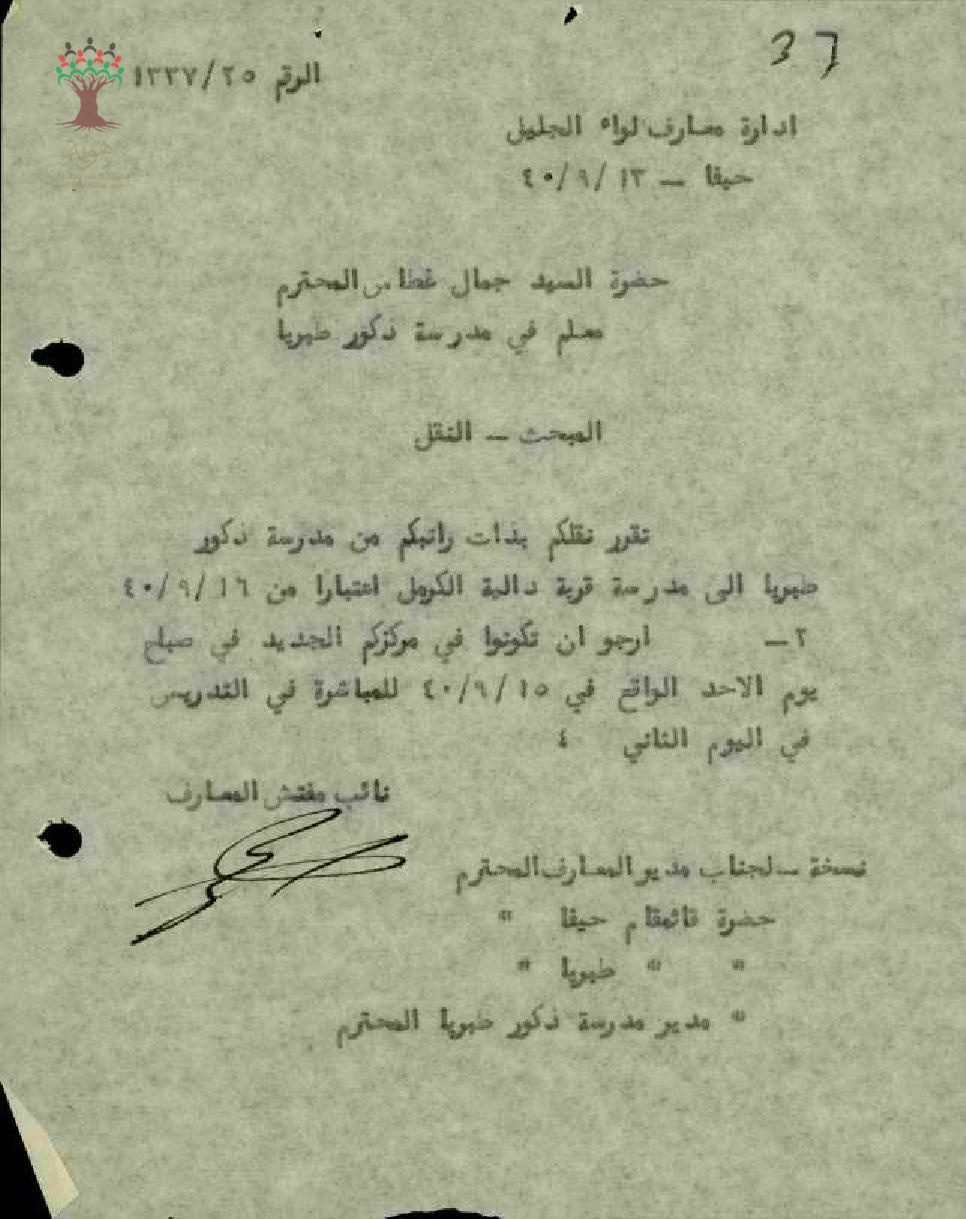 نقل المعلم جمال غطاس من مدرسة طبريا إلى مدرسة دالية الكرمل