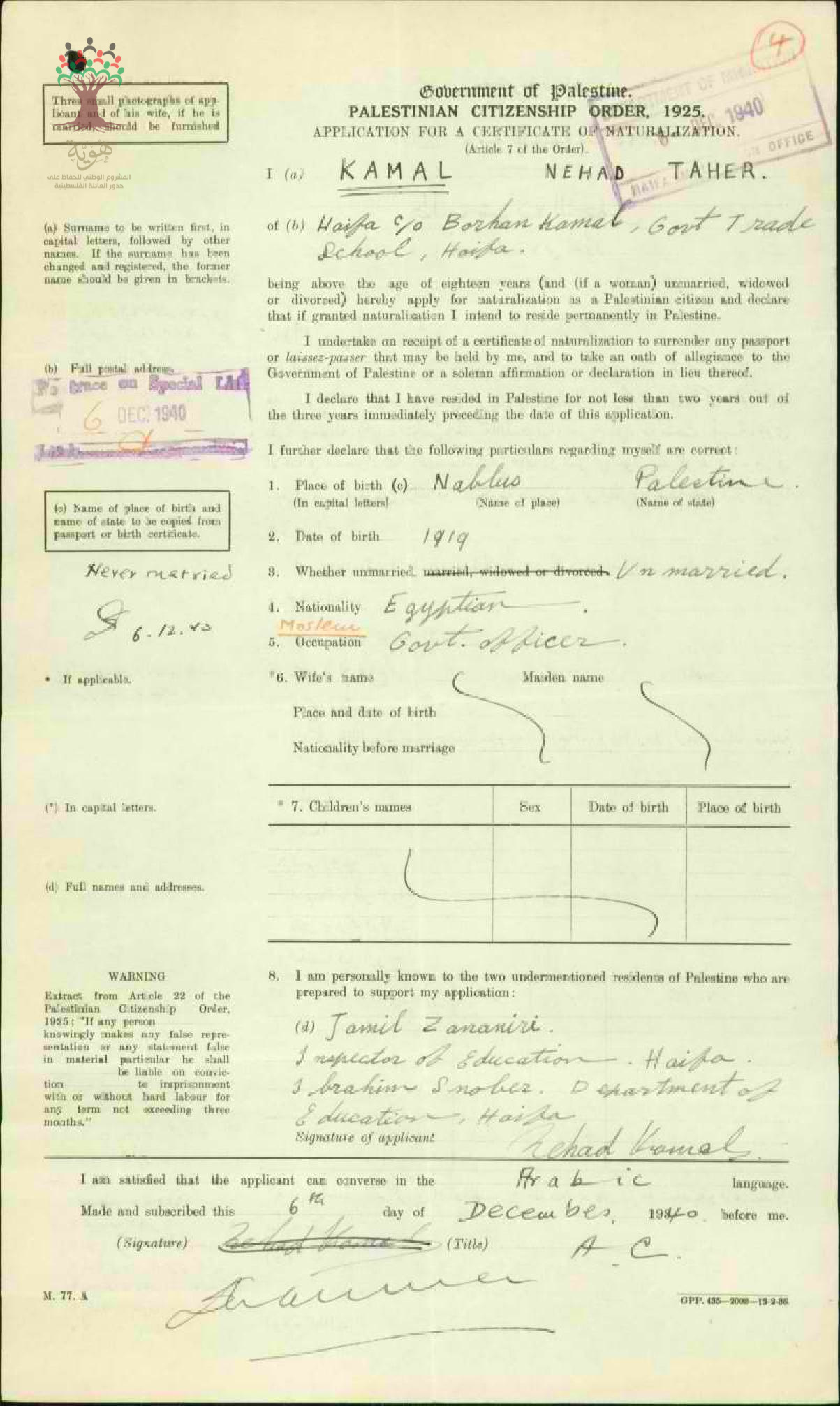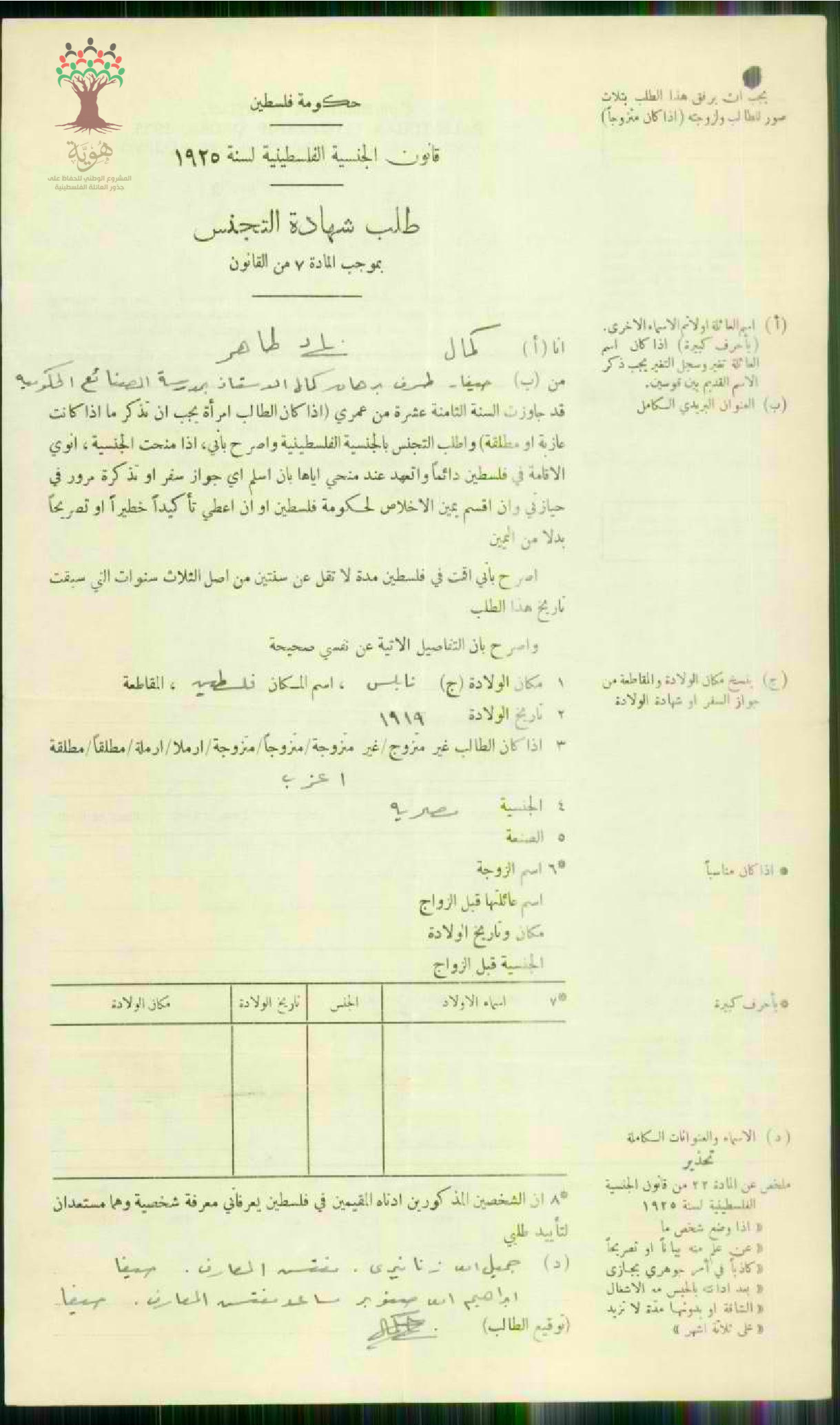 طلب الجنسية الفلسطينية-نهاد طاهر كمال-نابلس/مصر