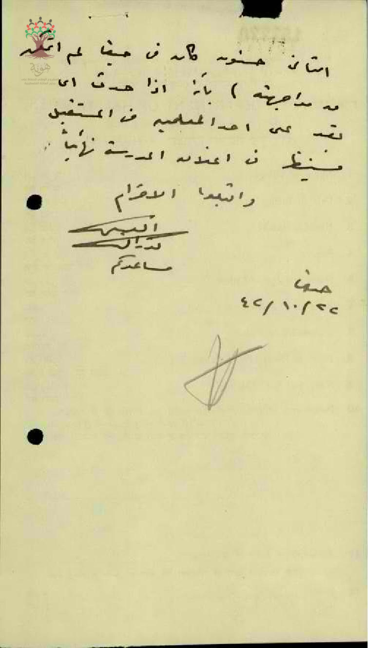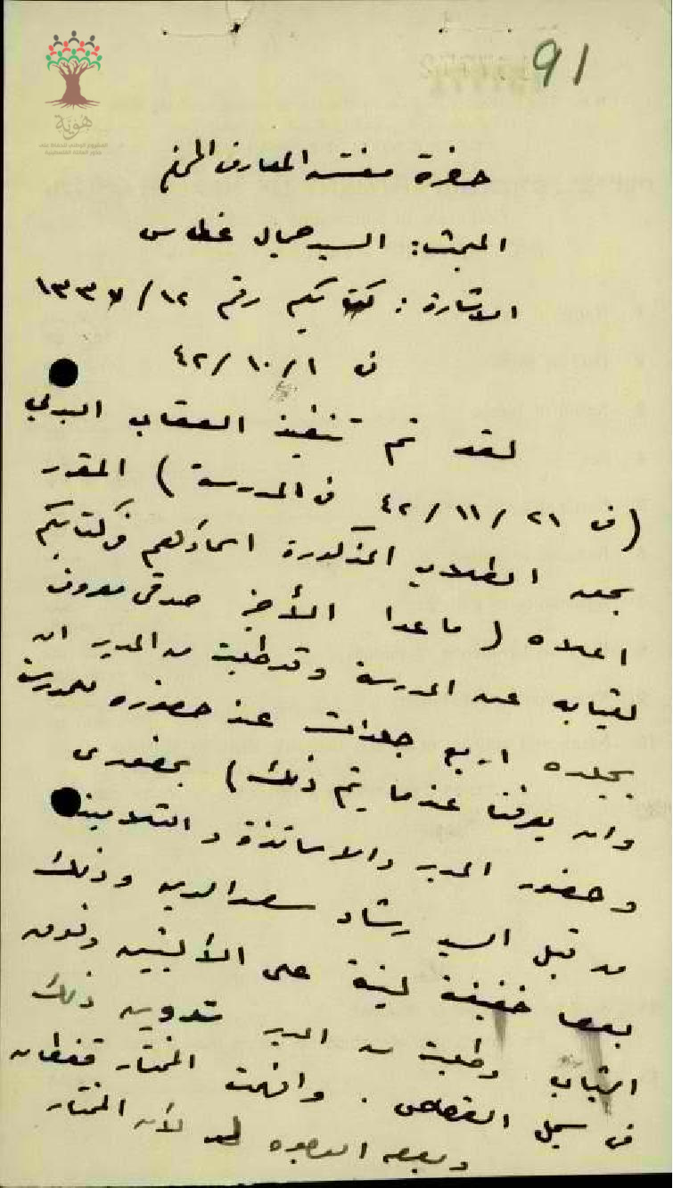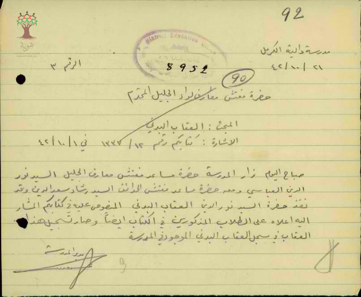 رسالة من مساعد مفتش المعارف إلى مفتش المعارف يعلمه بتنفيذ العقاب على الطلاب الذين اعتدوا على المعلم جمال غطاس