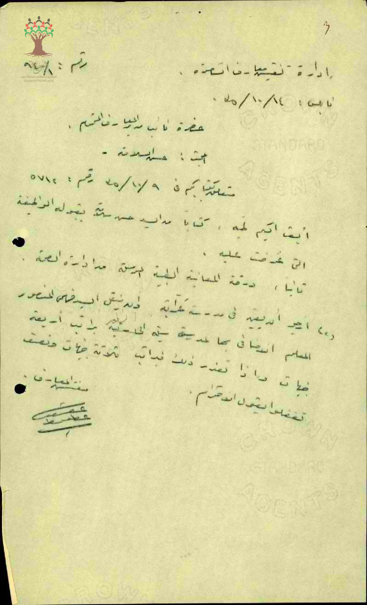 رسالة من مفتش المعارف إلى نائب مدير المعارف يعلمه بقبول المعلم حسن سلامة مركز معلم في الإدارة