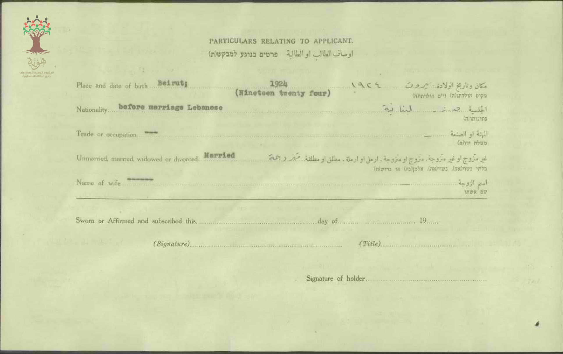 شهادة الجنسية الفلسطينية ل إنعام الشيخ حسن حبال