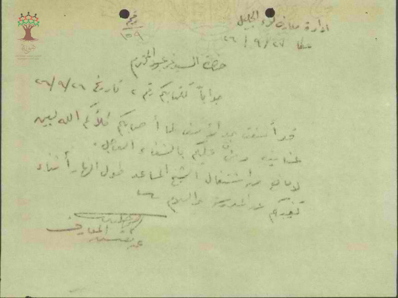 رسالة من مفتش المعارف إلى المعلم نمر عبود يبحث معه أمر الحادثة التي حصلت له والعمل خلال الاسبوع