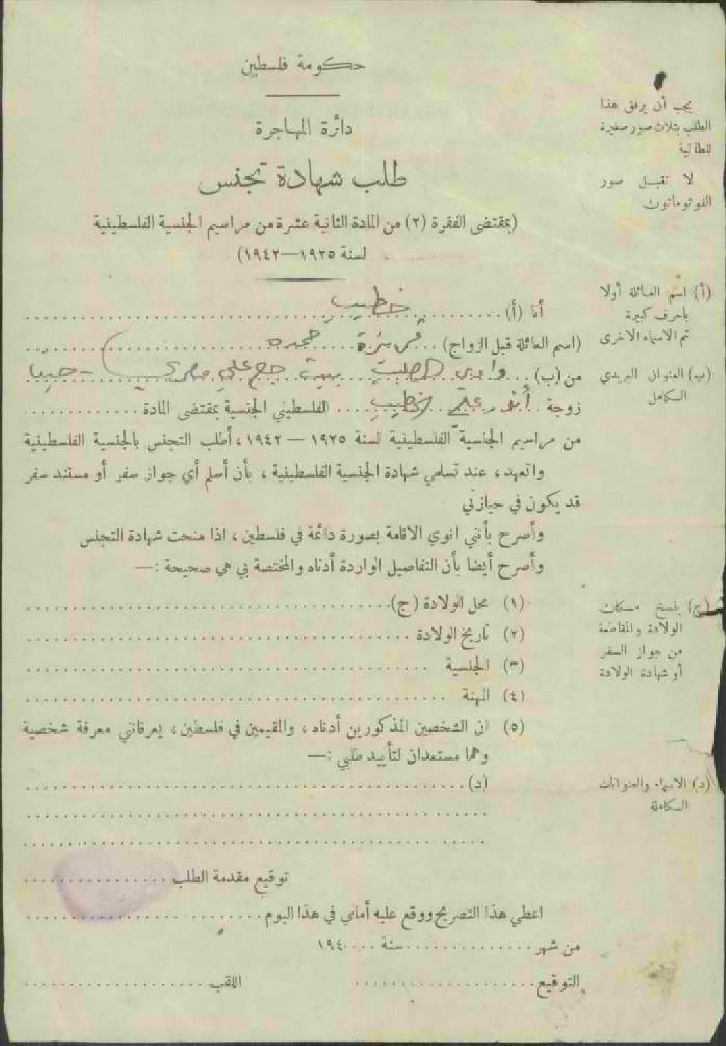 طلب الجنسية الفلسطينية-فريزة رباح الخطيب-حيفا/سوريا