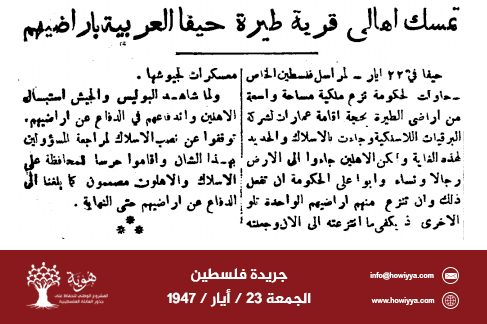 تمسك أهلي قرية طيرة حيفا العربية بأراضيهم 23/5/1947